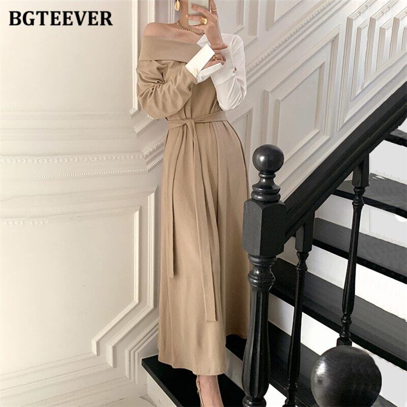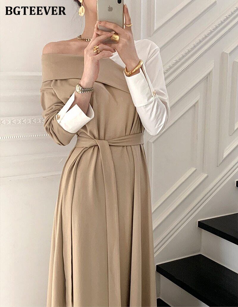 【新作】【送料無料】 BGTEEEVRスタイリッシュなVネックパッチワーク女性Aラインドレスシックなフルスリーブレースアップロングドレス春のドレスVestidos スプリング 春物 12b173453012013