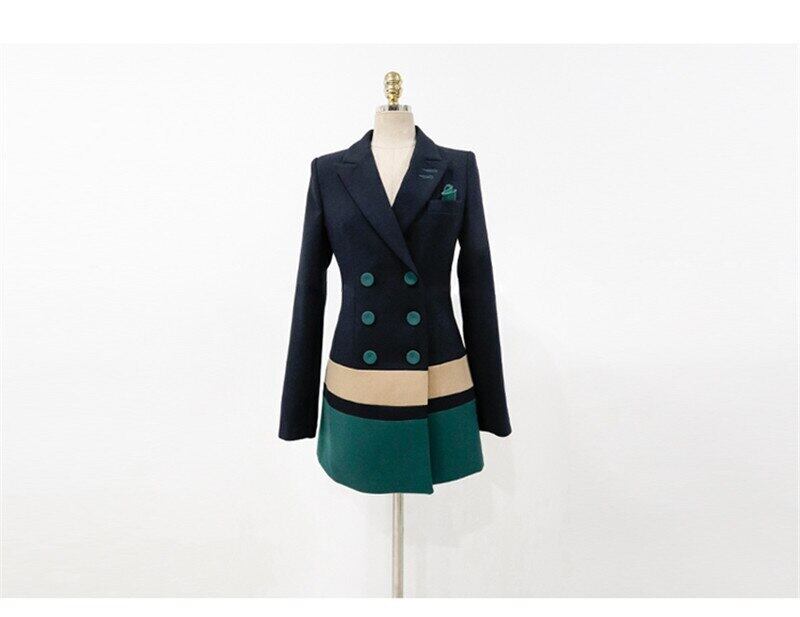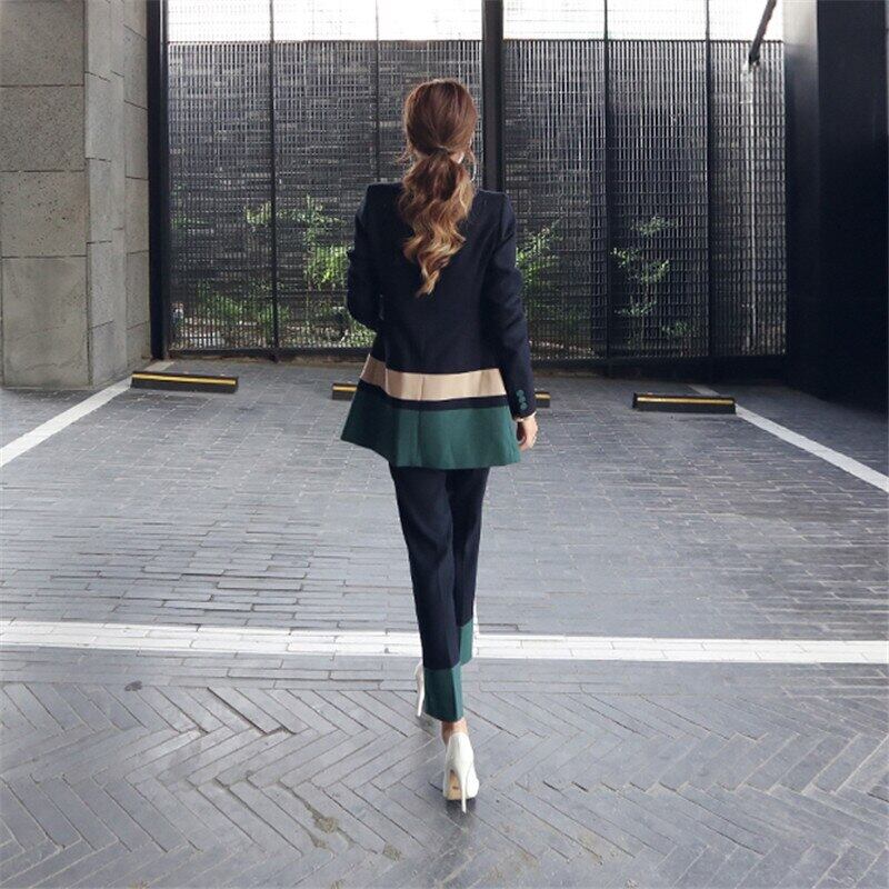 【新作】【送料無料】 2018 WomenTwo Pieces Set Vintage Slim Patchwork Green Long Blazer + Ankle-Length Pant Suits Double Breasted Loose Outfits ロング スリム グリーン ビンテージ 12b184912365718