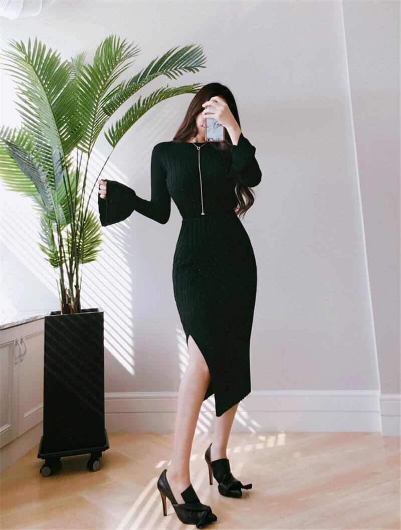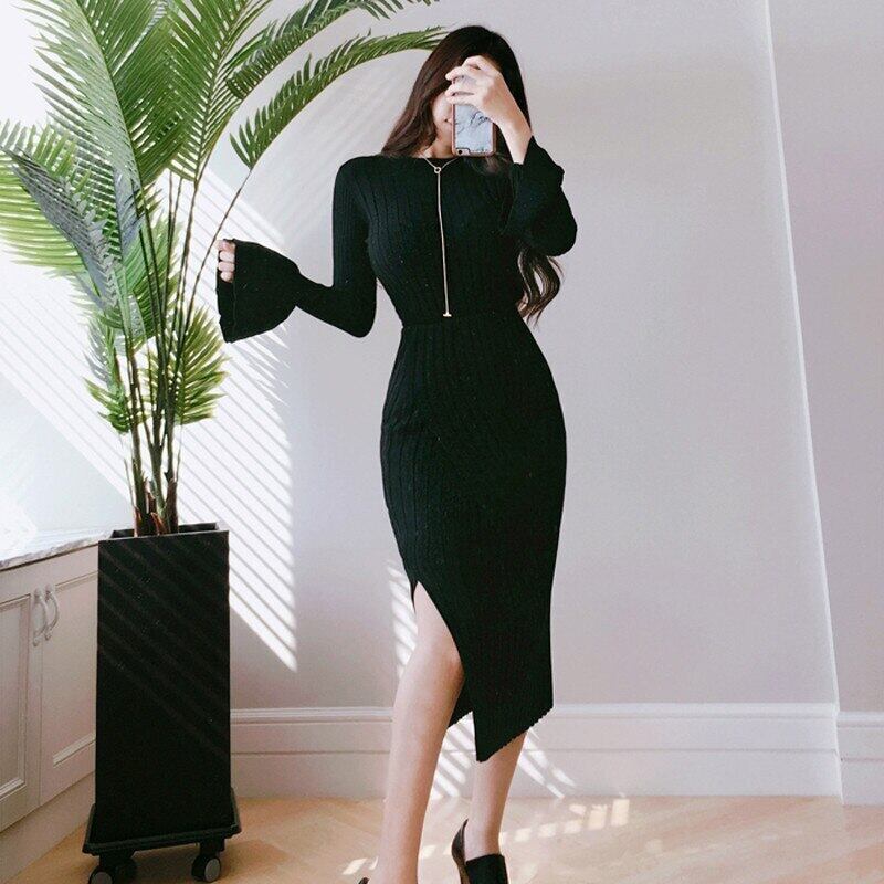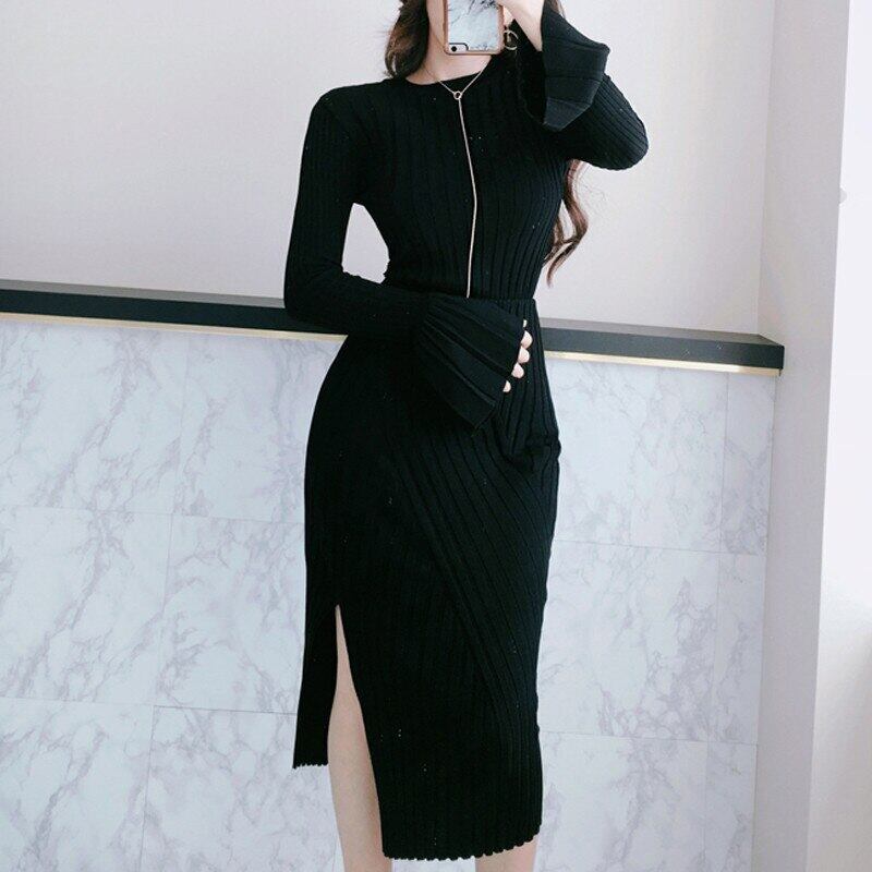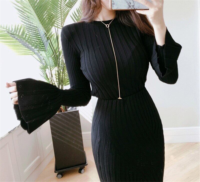【新作】【送料無料】 冬22ピースセットフレアスリーブニットセーターとヒップパッケージスカートスーツ伸縮性ウエストスカートトラックスーツウォームプルオーバー エラスティック ウィンター 冬物 12b186077725409