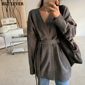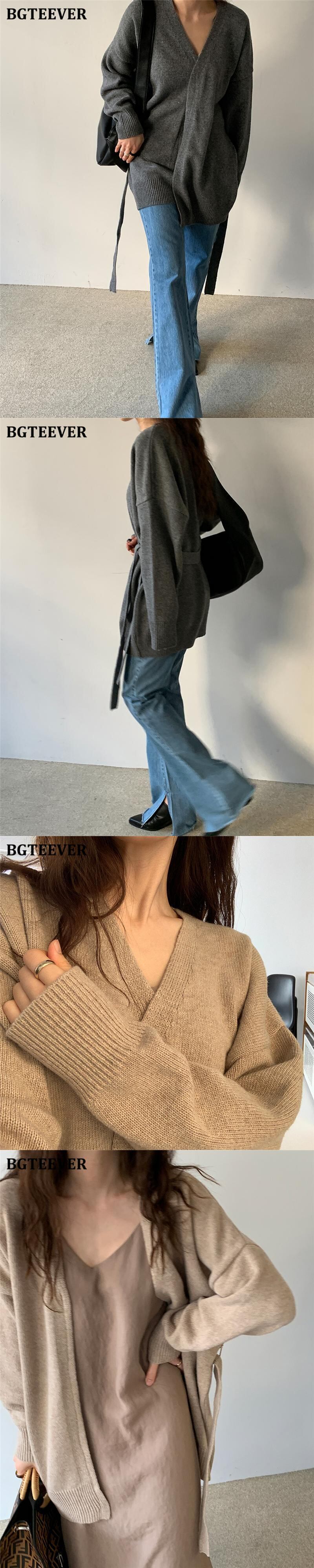 【新作】【送料無料】 BGTEEVERVネックオーバーサイズレースアップレディースニットカーディガン2020秋冬長袖セーターニットトップス ロング オータム 秋物 ウィンター 冬物 12b169571440720
