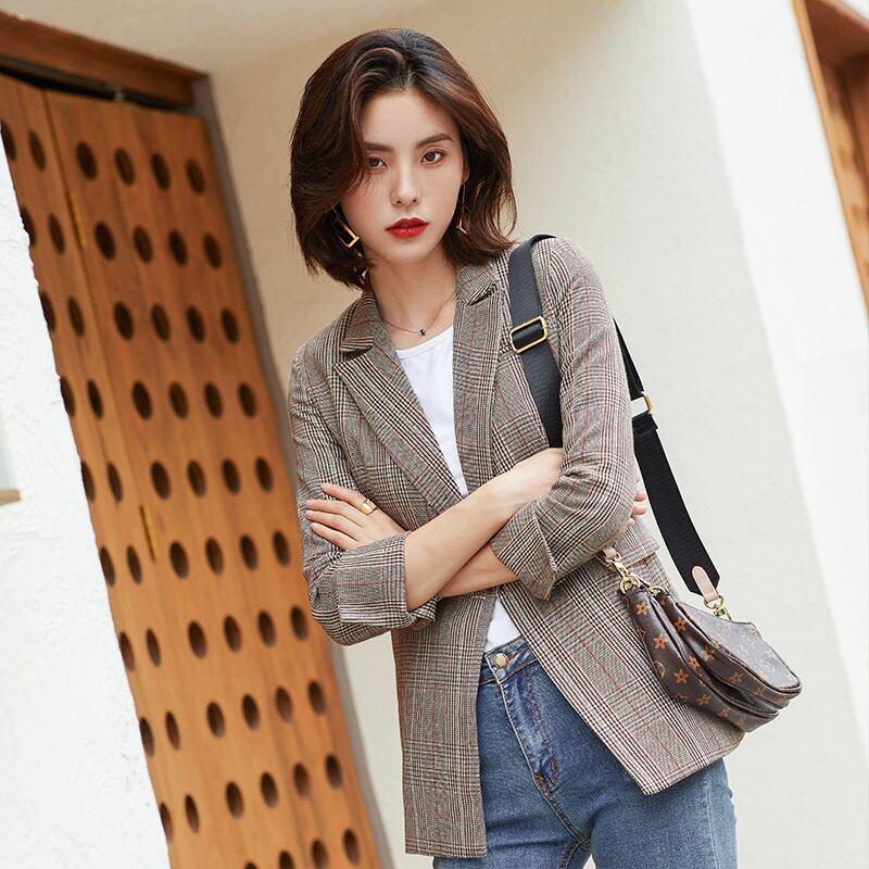 【新作】【送料無料】 Real s2020スモールスーツジャケットレディースルーズカジュアルチェック柄レディース秋冬新作ラージサイズスーツレディースジャケット-アリババ 大きめサイズ オータム 秋物 ウィンター 冬物 12b264307593916