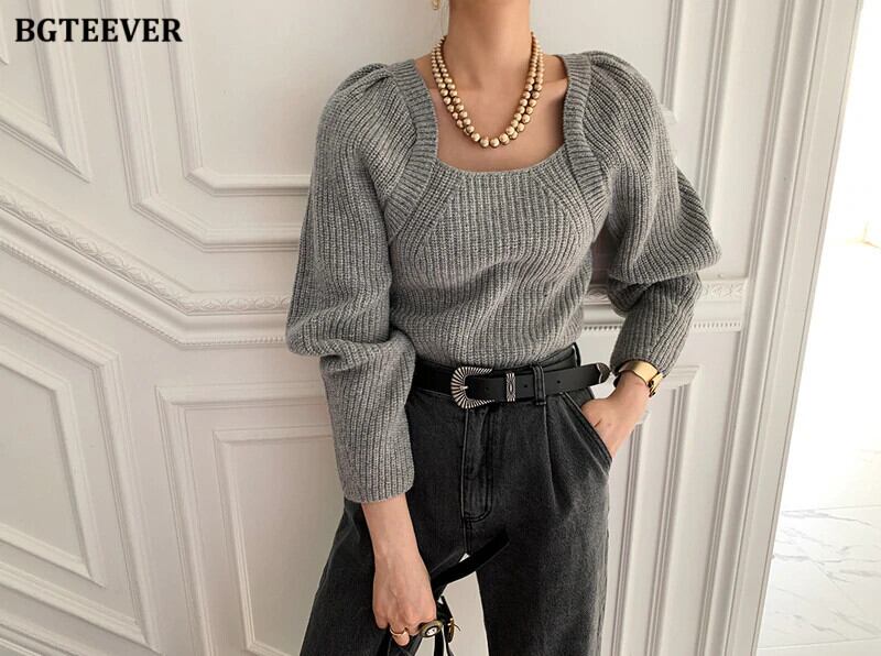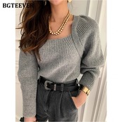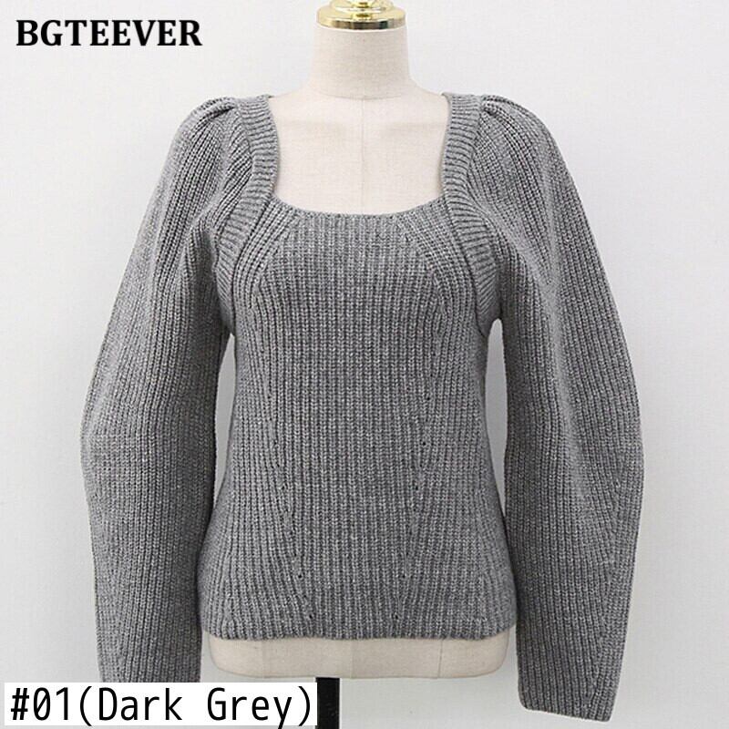 【新作】【送料無料】 BGTEEVERシックな秋冬女性スクエアカラー編みプルオーバーパッチワークフルスリーブセーター2020 オータム 秋物 ウィンター 冬物 スクウェア 12b137450648926