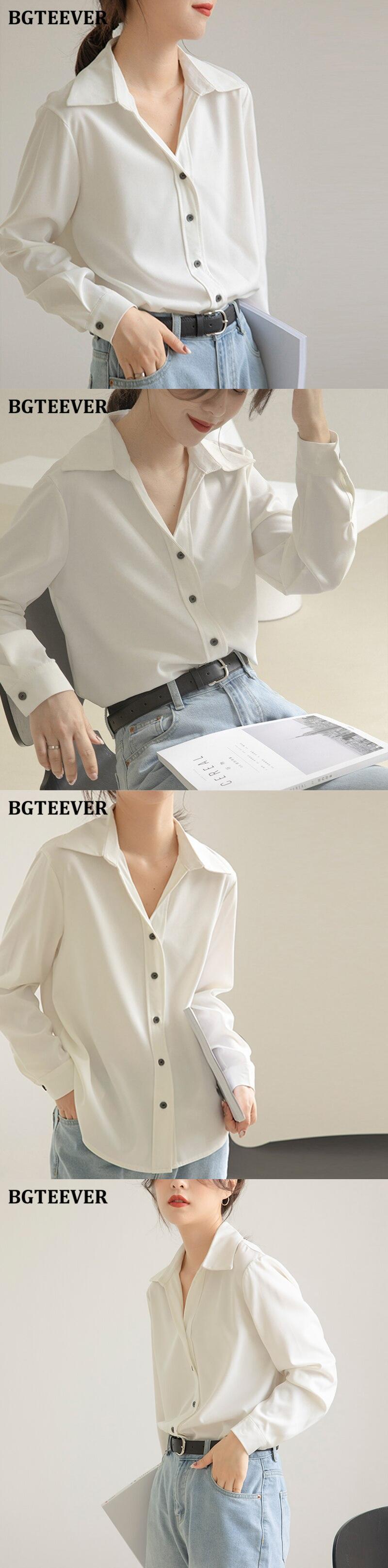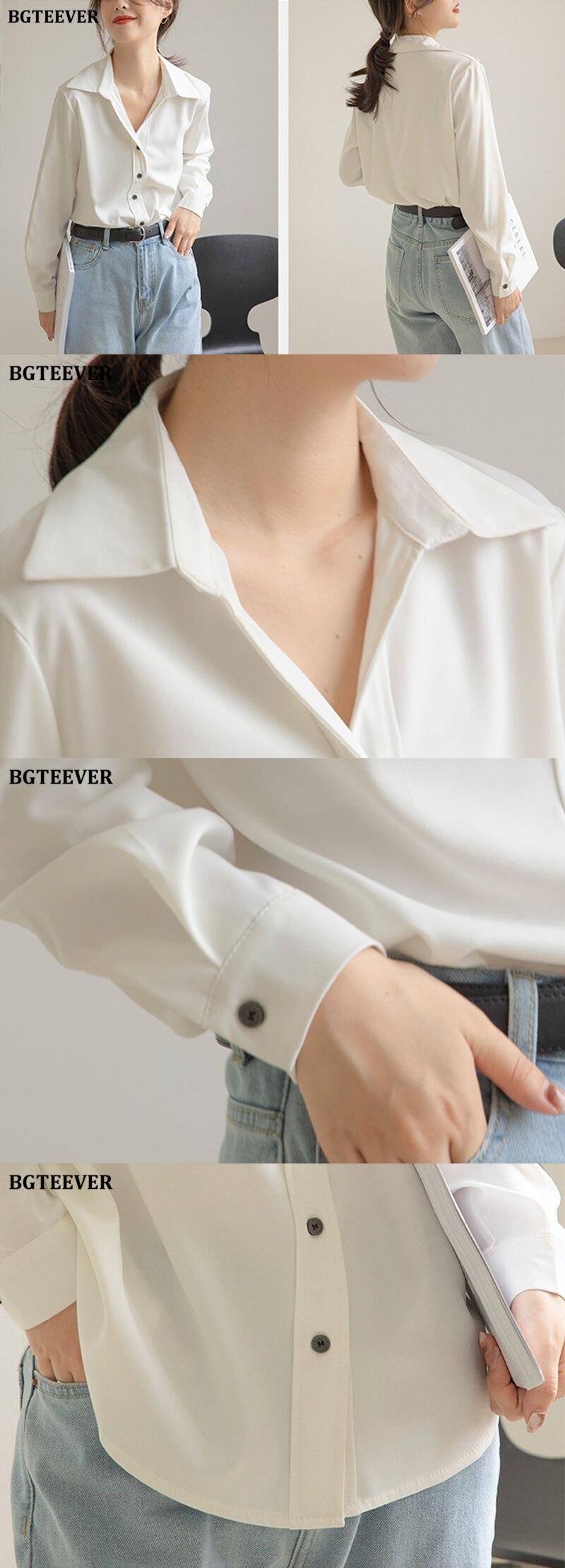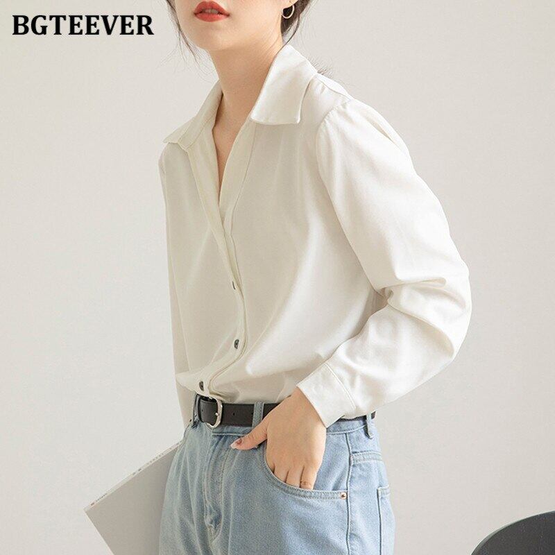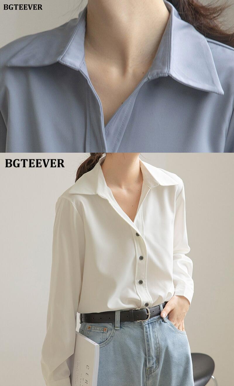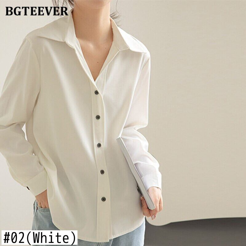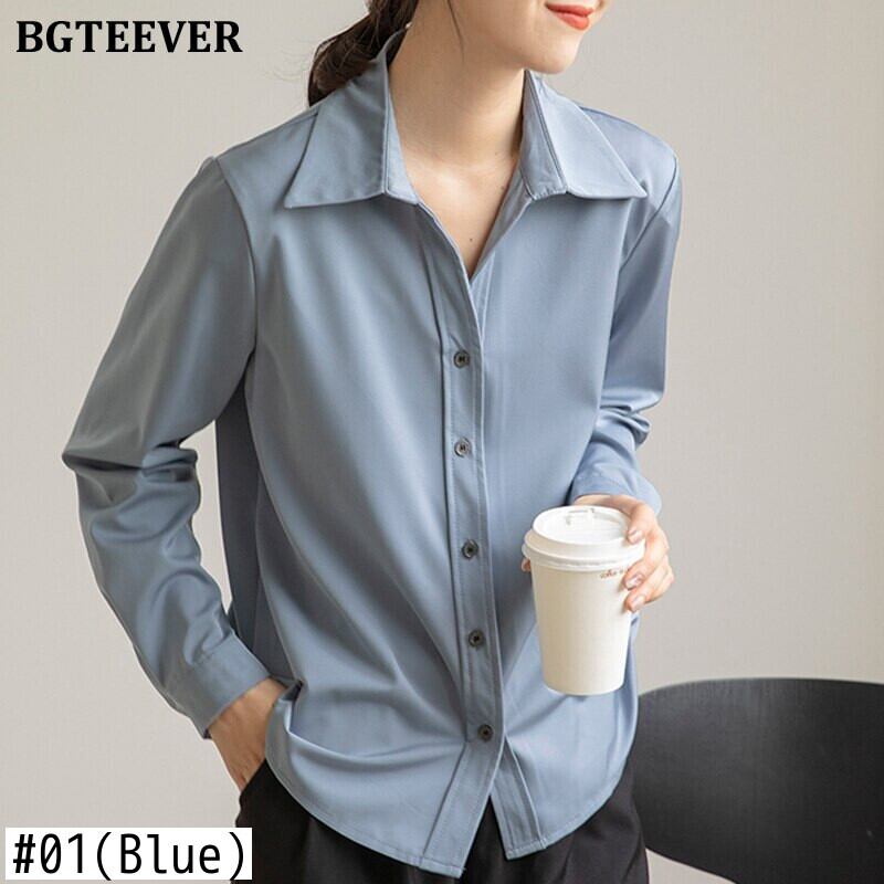 【新作】【送料無料】 BGTEEVERヴィンテージシックフルスリーブルーズシングルブレストシャツラペルレディースソリッドブラウス2021スプリングトップス 春物 ソリッドカラー ビンテージ 12b143279877485