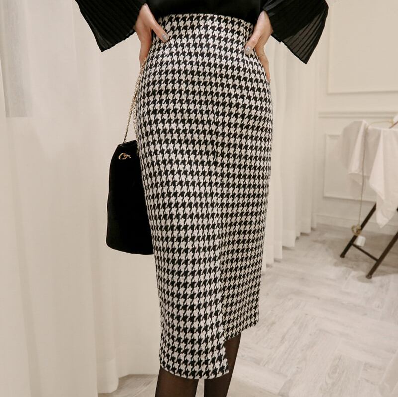 【新作】【送料無料】 千鳥格子レディーススカートスーツワンボタンスリムブレザー&ミドル丈スカート2018秋チェック柄2枚セットフェミニノ オータム 秋物 12b138063314424