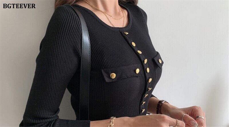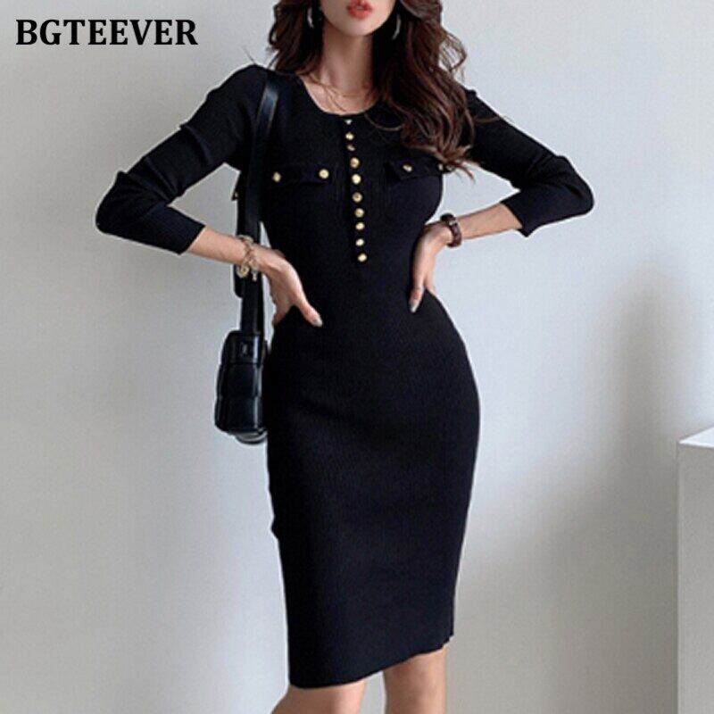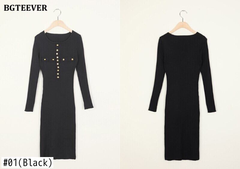 【新作】【送料無料】 BGTEEVERスタイリッシュなOネックの女性シングルブレストパッケージヒップセーターVestidos冬の長袖スリムニットミディドレス ロング ウィンター 冬物 12b163044710071