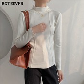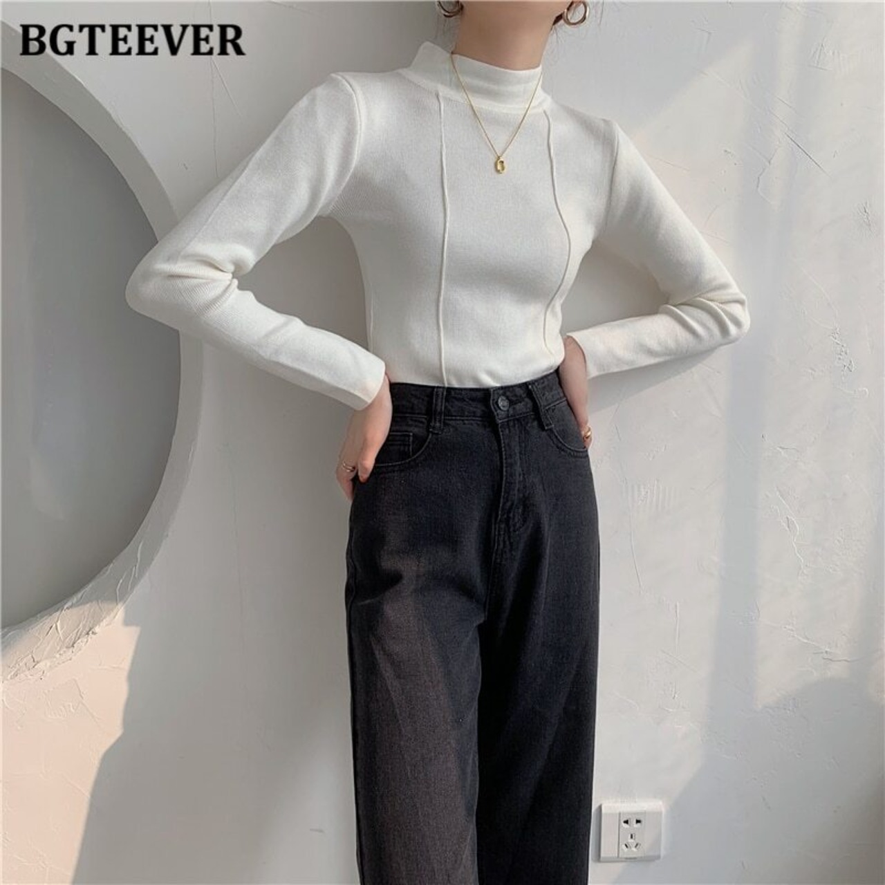 【新作】【送料無料】 ハーフタートルネック女性ウォームスリムセーター秋冬長袖スキニーニットジャンパー ロング オータム 秋物 ウィンター 冬物 12b130097019682