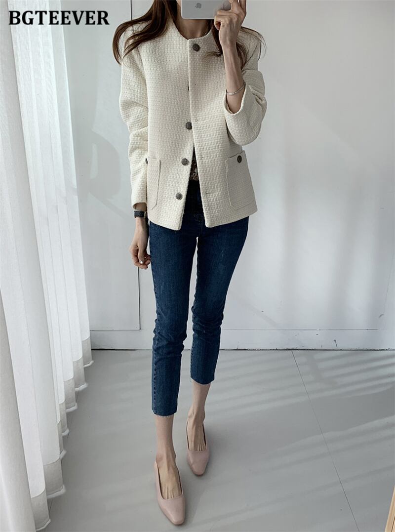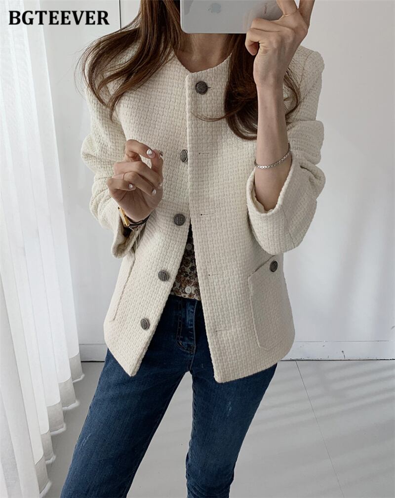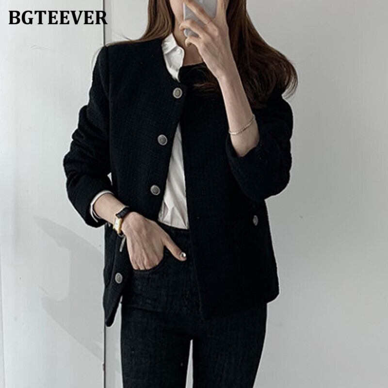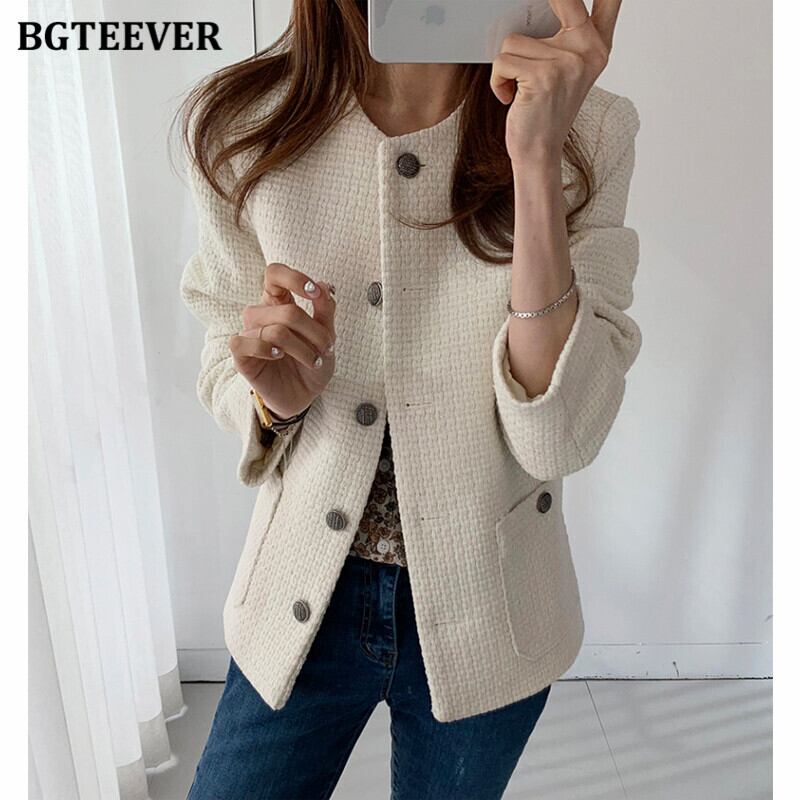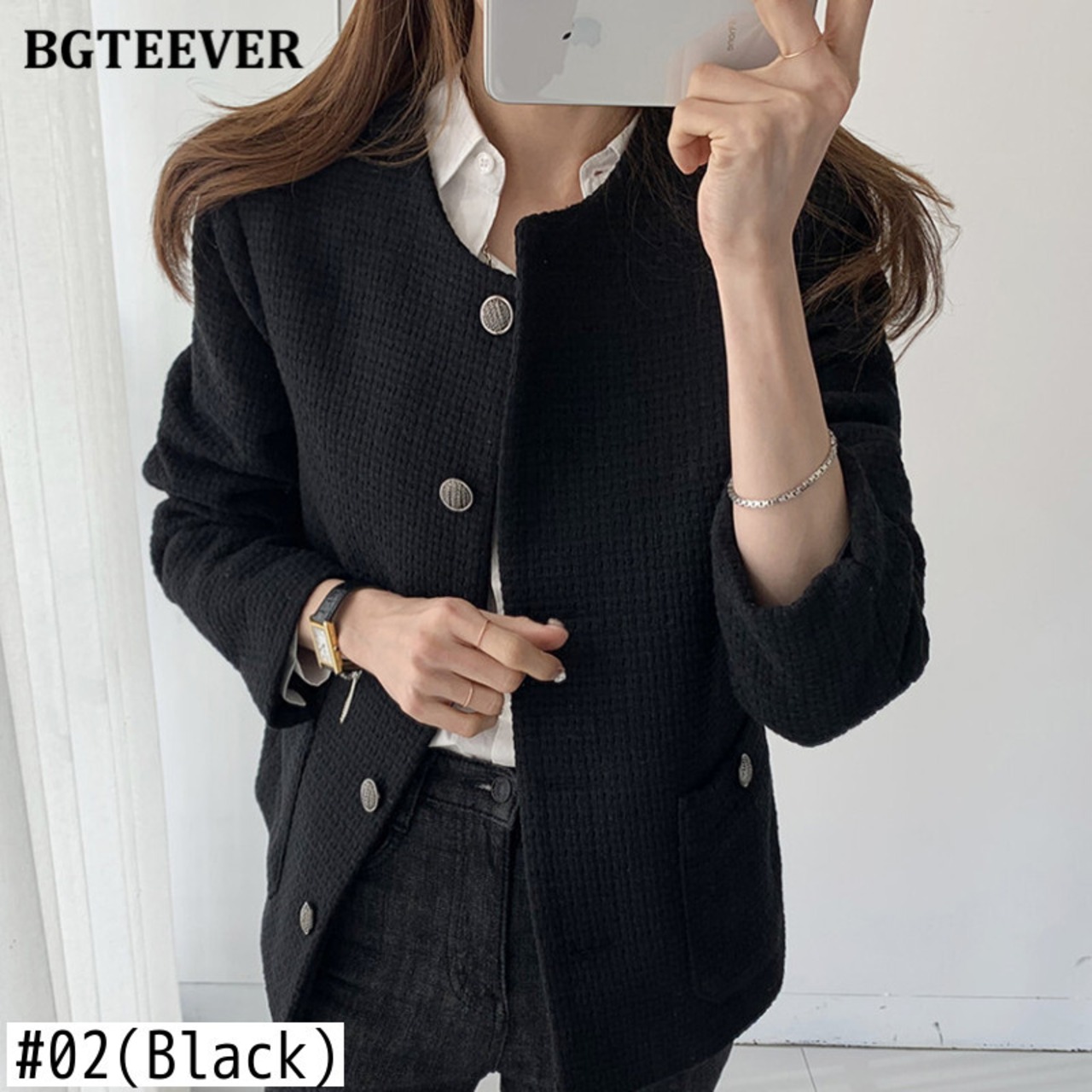 【新作】【送料無料】 BGTEEVERシックでスタイリッシュなOネックの女性シングルブレストウールコートフルスリーブポケットスリムアウタージャケット2021 12b121040068994