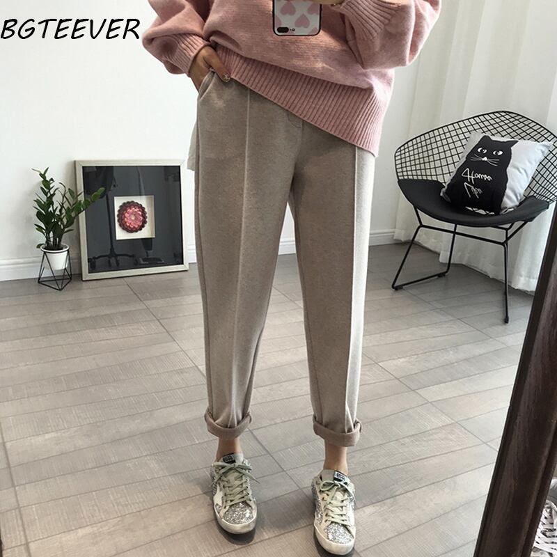 【新作】【送料無料】 BGTEEVER Winter Thicken Women Pencil Pants Plus Size Wool Pants Autumn Waist Loose Trousers Capris Good Fabric 大きめサイズ オータム 秋物 ウィンター 冬物 12b113940186382