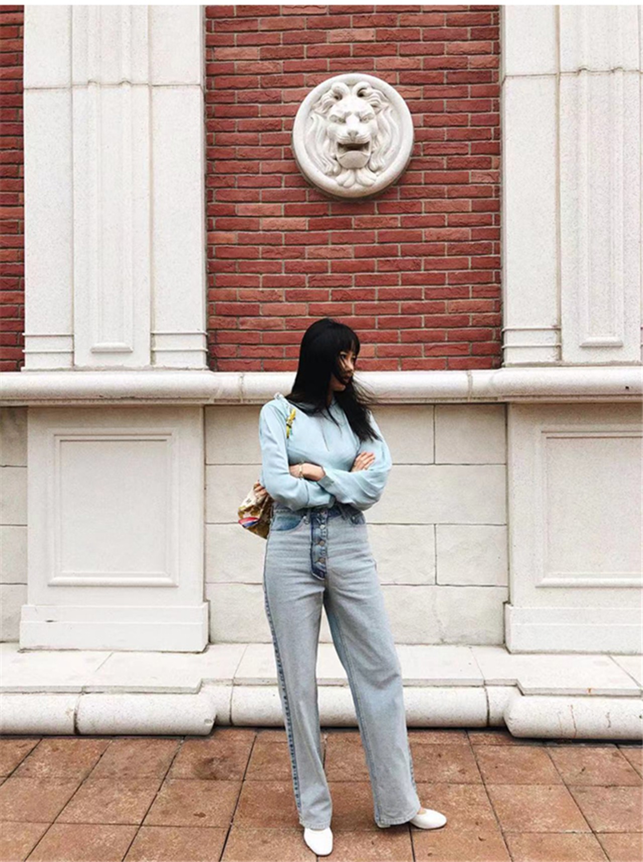 【新作】【送料無料】 ヴィンテージライトブルーウォッシュドデニムジーンズレディースパンツシングルブレストデニムルーズパンツウエストストリートウェアs2019 ビンテージ 12b164731882240