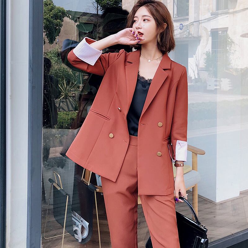 【新作】【送料無料】 2点セットダブルブレザー&ロングパンツスーツレディースジャケット作業着セットスーツ 12b114059427934