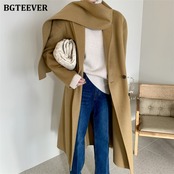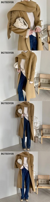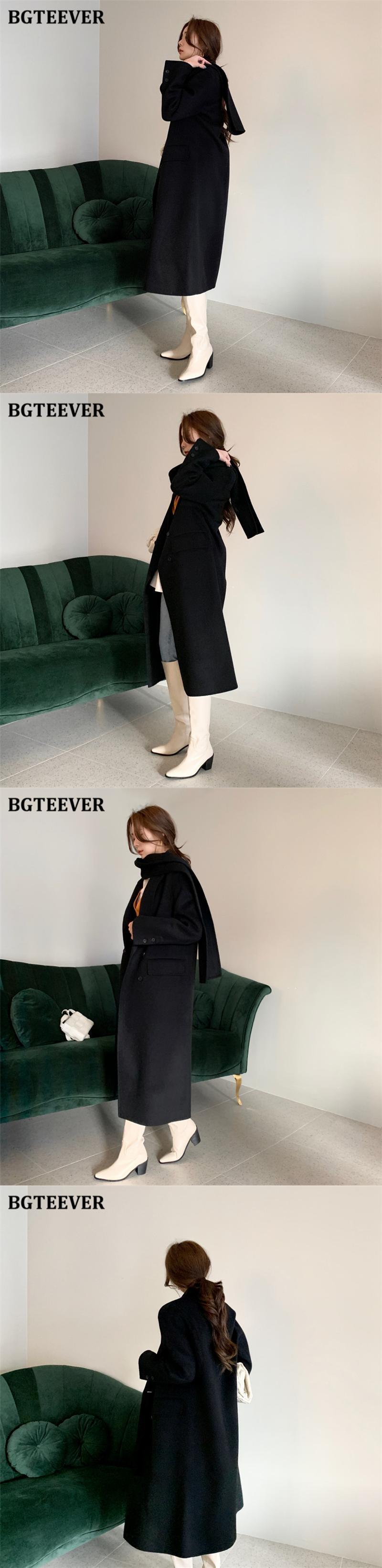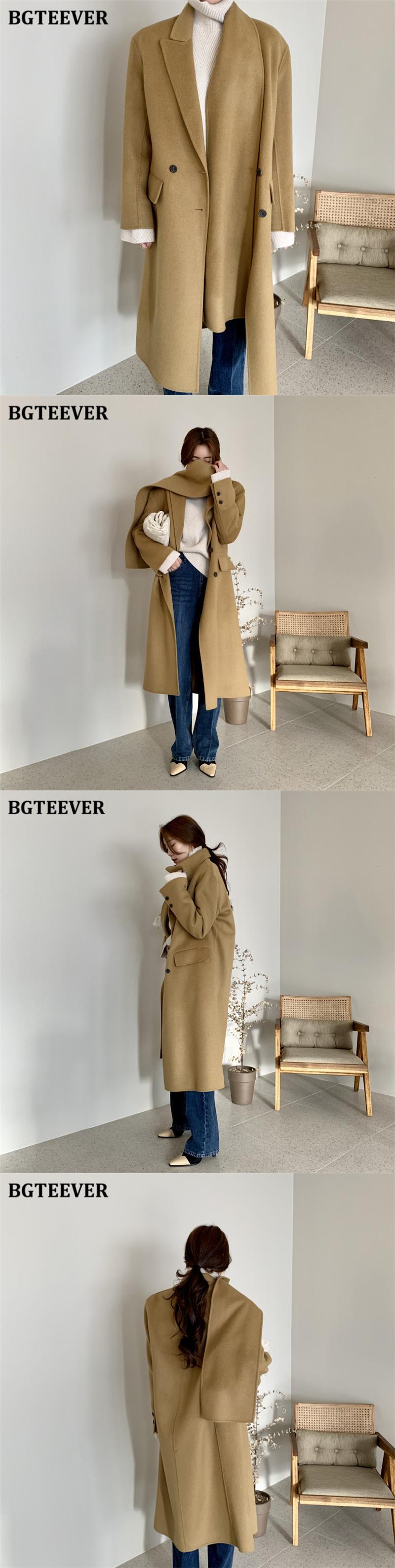 【新作】【送料無料】 BGTEEVERスタイリッシュなノッチカラーの女性のオーバーコートルーズシングルブレストロングブレンドコート2020冬のウールコート ウィンター 冬物 12b155441134146