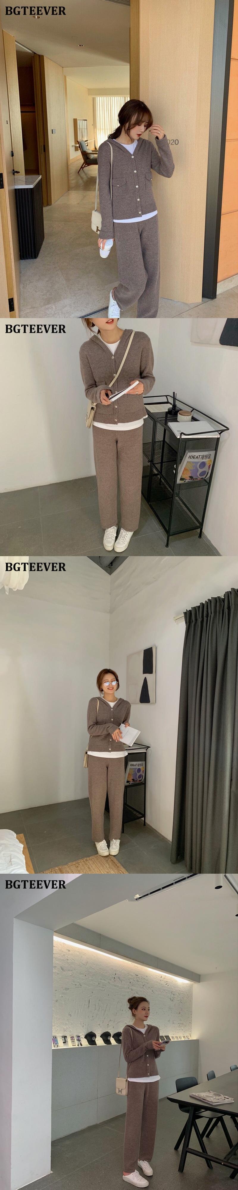 【新作】【送料無料】 BGTEEVER Winter WomenセーターセットVネックシングルブレストカーディガン&エラスティックウエストパンツ2020ニット2点セット 伸縮 ウィンター 冬物 12b123420864055
