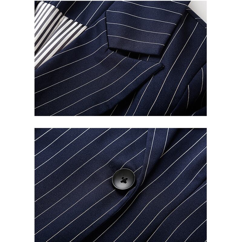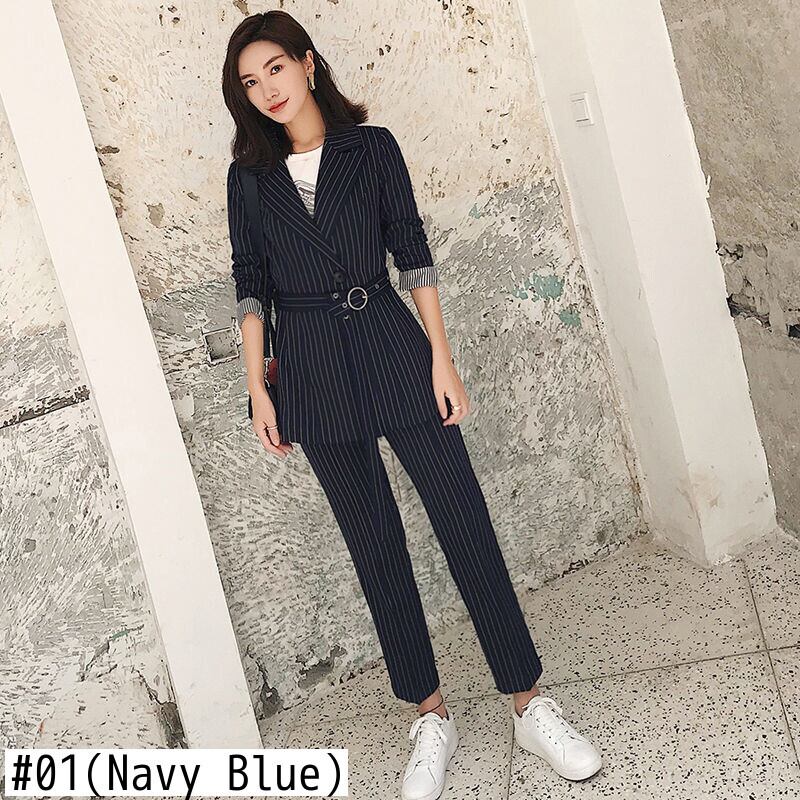 【新作】【送料無料】 2ピースセットストライプレディースパンツスーツワンボタンノッチブレザー&エラスティックウエストペンシルパンツ2018OLスタイルスーツ 伸縮 12b167144605798