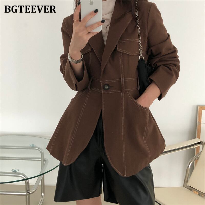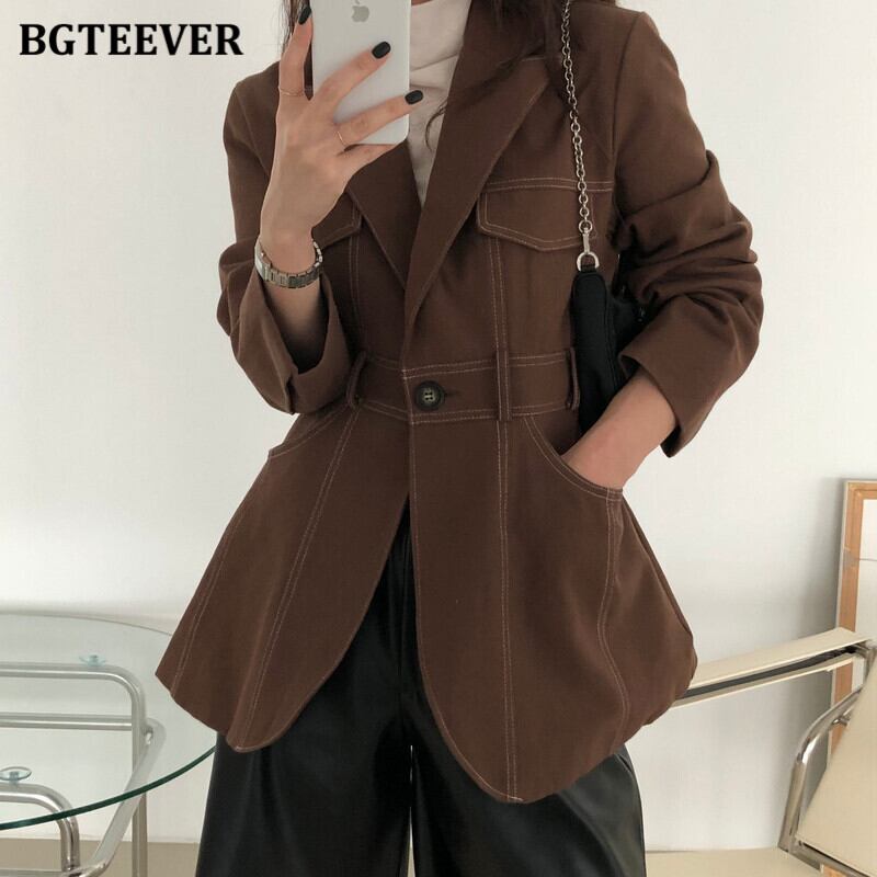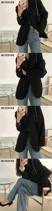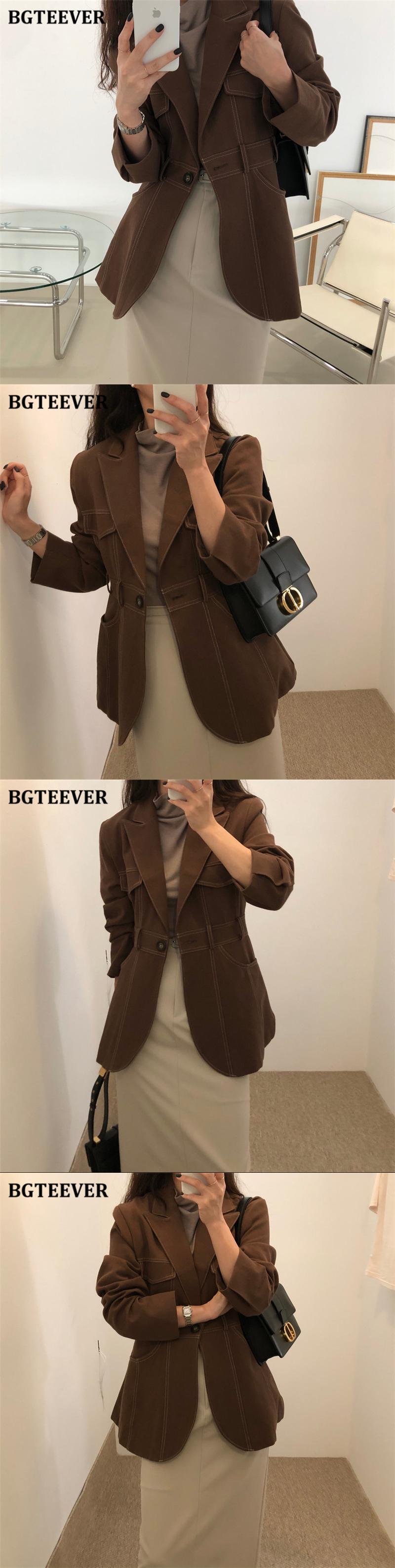 【新作】【送料無料】 BGTEEVERヴィンテージシックな女性のノッチ付きカラージャケット長袖シングルボタンスリムブレザージャケット2021春のアウター ロング スプリング 春物 ビンテージ 12b155739868196