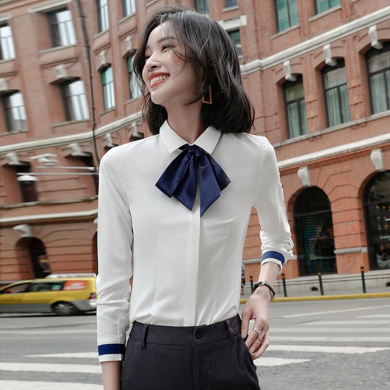 【新作】【送料無料】 本物のプラスサイズのシャツの女性2020年秋新しい長袖オールマッチトレンディなビジネスシャツのデザインセンスニッチ-アリババ ロング 大きめサイズ オータム 秋物 12b239768673429