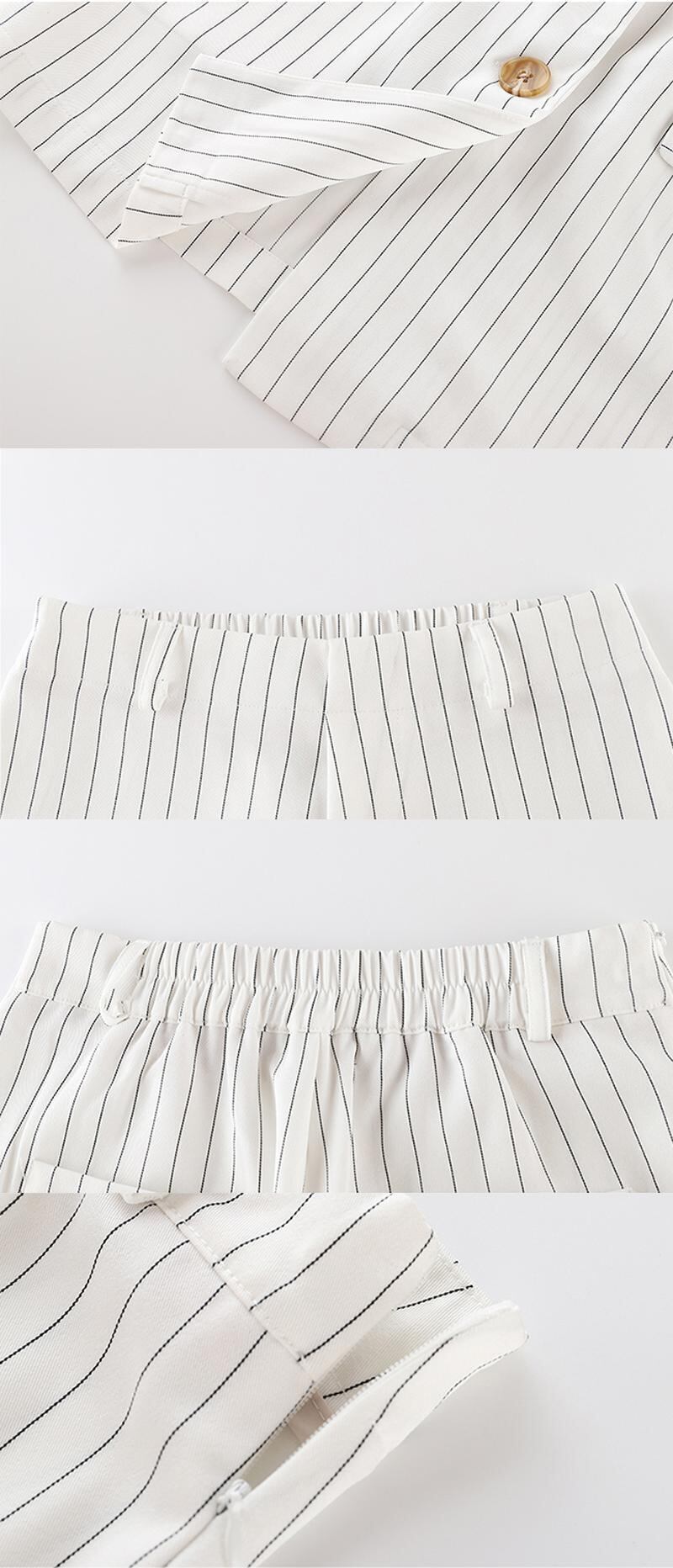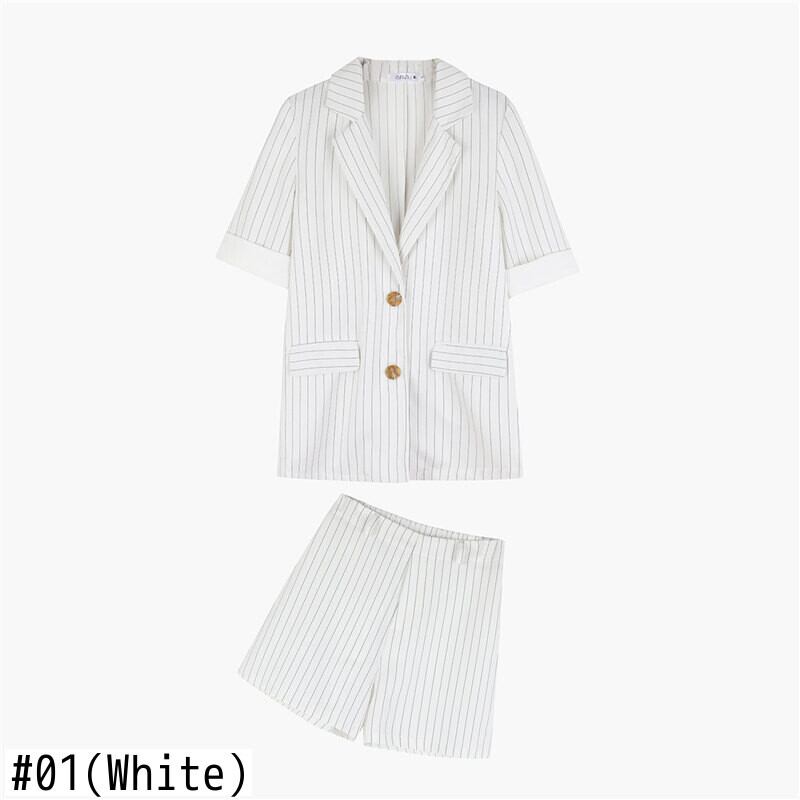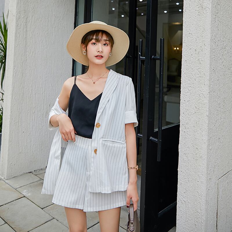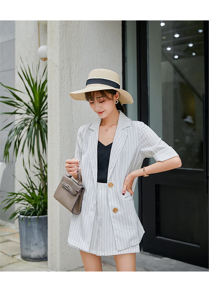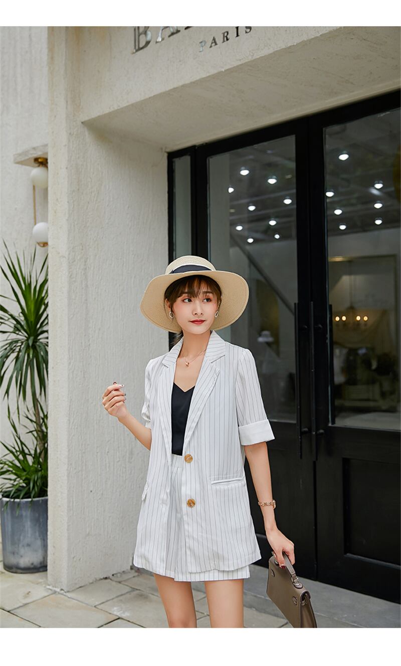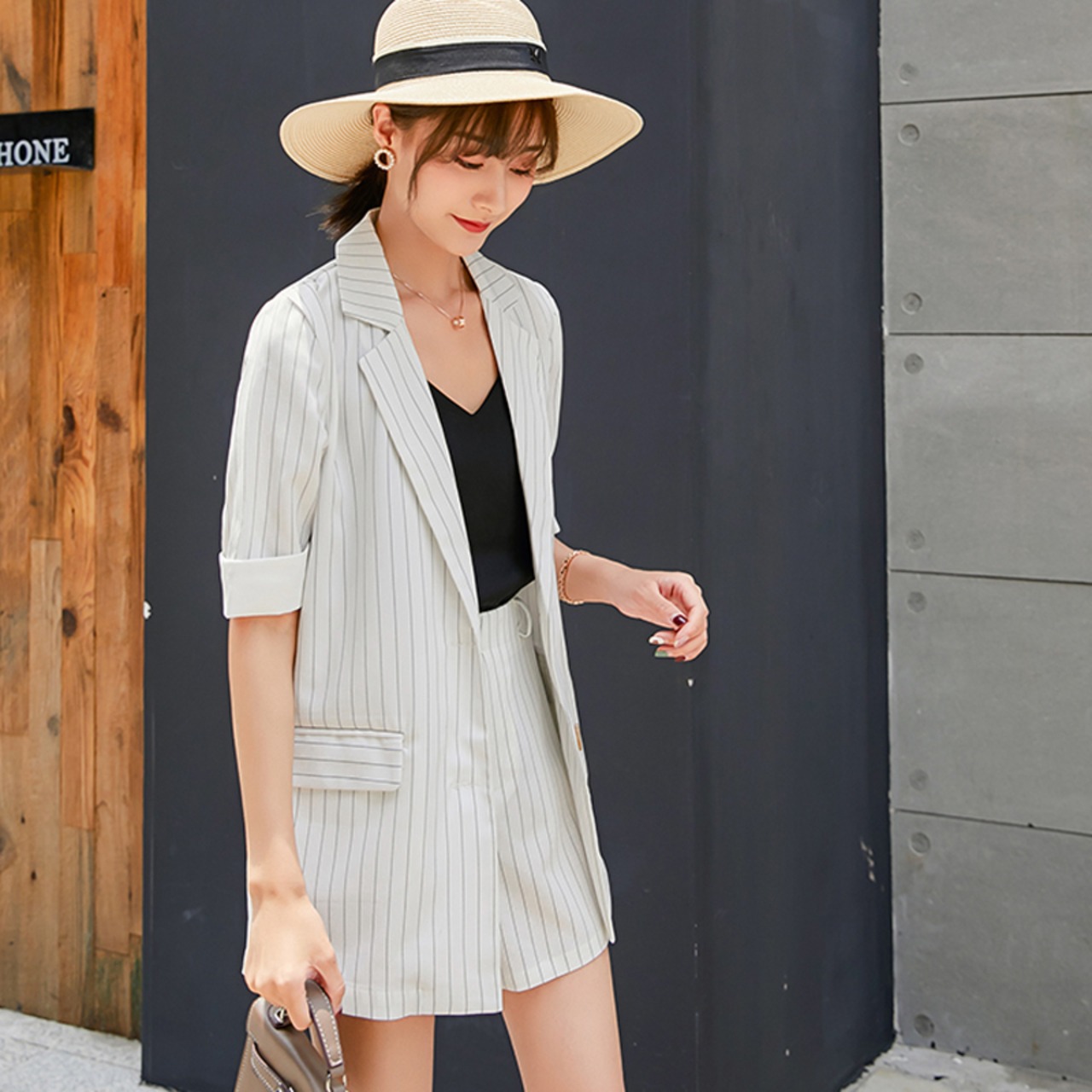 【新作】【送料無料】 夏の2点セットストライプショートスーツシングルブレストジャケットブレザー&伸縮性ウエストショーツレディースパンツスーツ2019 エラスティック サマー 夏物 ブルマー 12b11319556961
