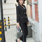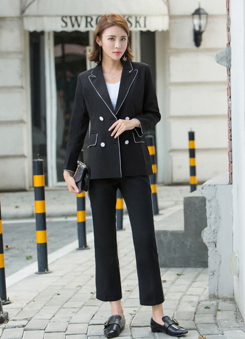 【新作】【送料無料】 女性ブラックワークパンツスーツオフィスレディジャケットブレザー&ウエスト足首丈パンツ衣装テルノフェミニーノ 会社 学校 通勤や通学にも 12b141813922625