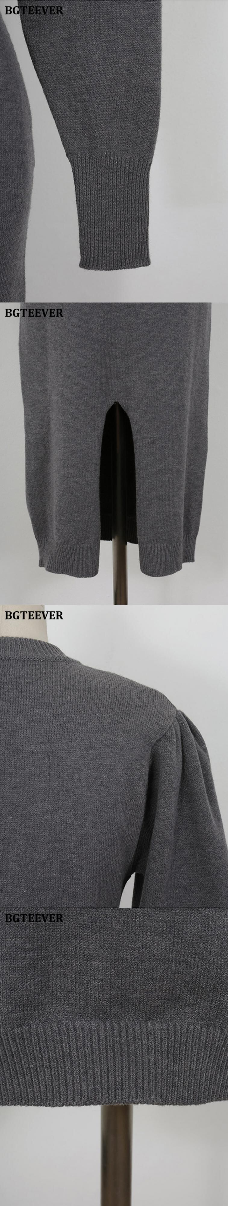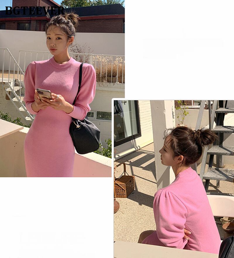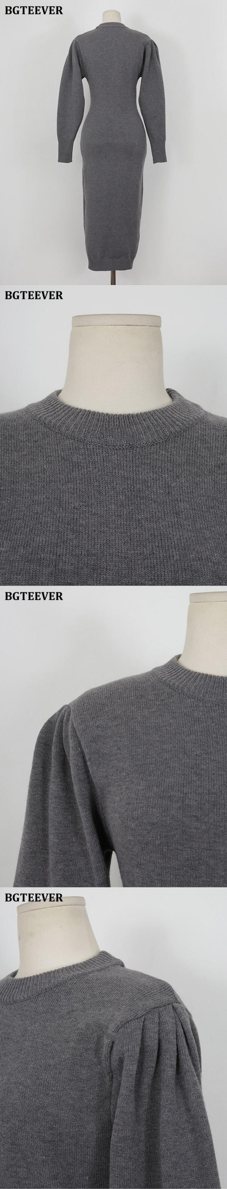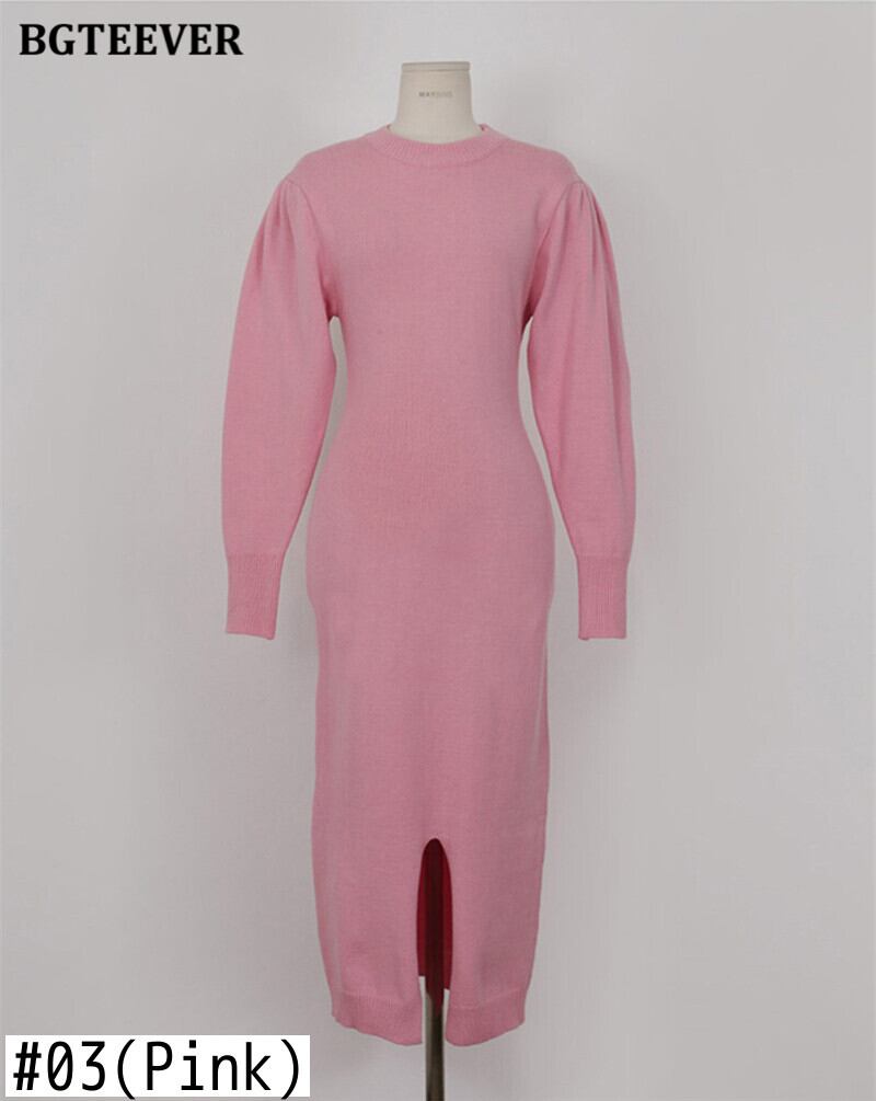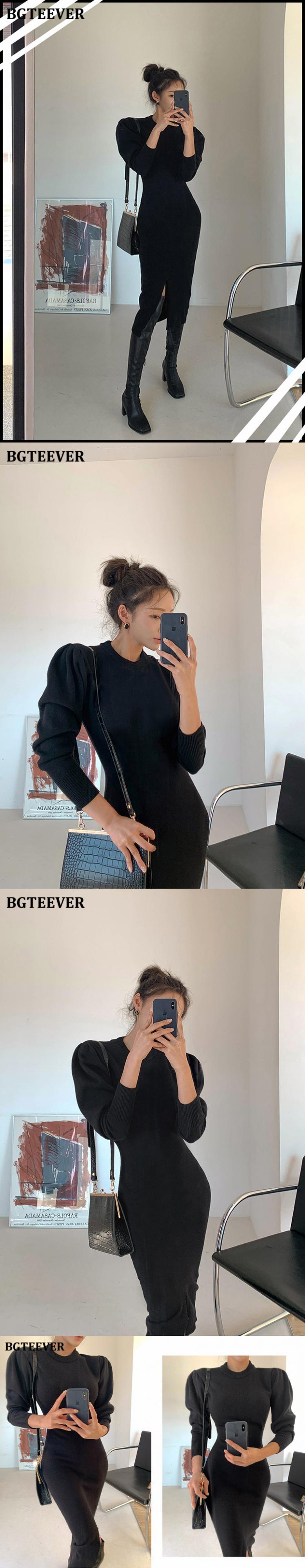 【新作】【送料無料】 BGTEEVERヴィンテージ女性ロングニットドレスOネックフルスリーブボディコンセータードレス2020秋冬Vestidos オータム 秋物 ウィンター 冬物 ビンテージ 12b140292253030