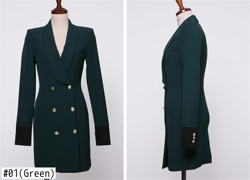 【新作】【送料無料】 秋のディープグリーンノッチカラーパッチワーク女性ブレザードレスオフィスエンパイアダブルブレストセクシーヴェスティド オータム 秋物 会社 学校 通勤や通学にも 12b178612703313