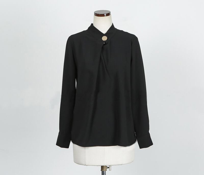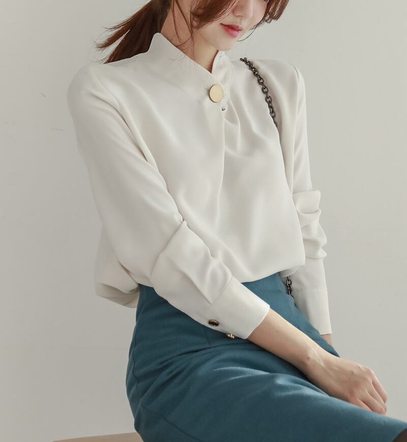 【新作】【送料無料】 オフィスソリッド長袖トップスとシャツスリム女性ブラウスシャツラウンドネックソフトブルサファム2018 ロング Oネック フェミニン ソリッドカラー 会社 学校 通勤や通学にも 12b154201938149