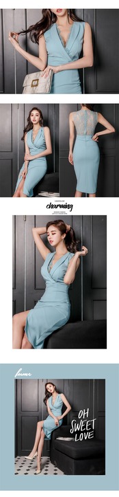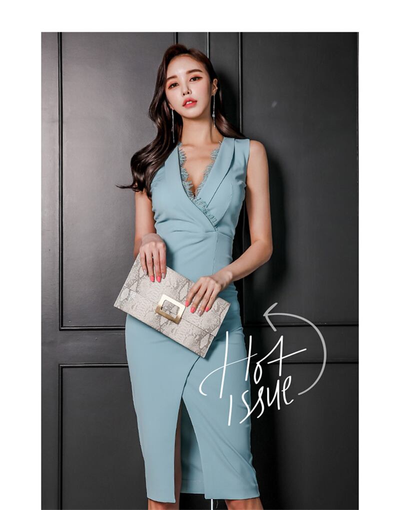 【新作】【送料無料】 中空Vネックボディコン女性ペンシルドレスレースパッチワークスリムウエストスプリットシースドレス2019 12b124312208559