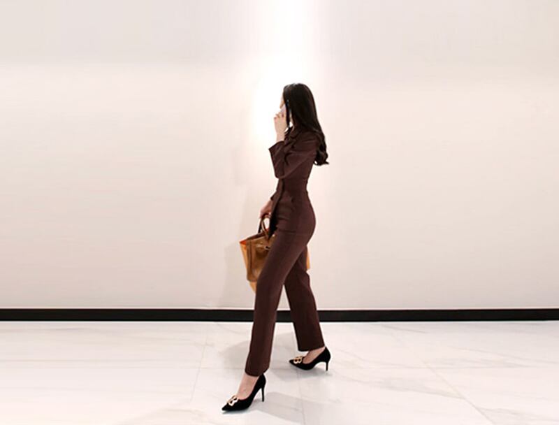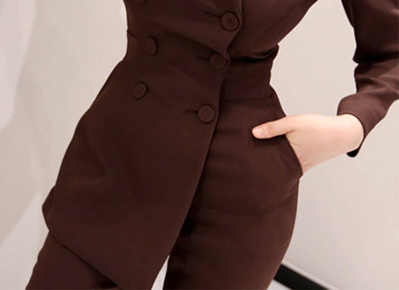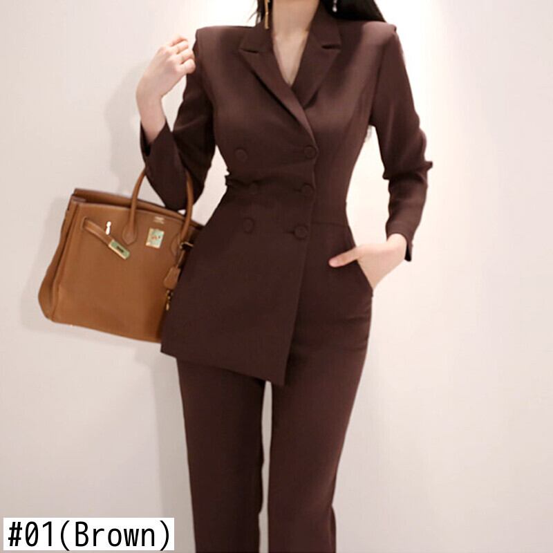 【新作】【送料無料】 オフィス不規則なダブルブレスト女性ジャンプスーツノッチ付き足首丈パンツジャンプスーツスリムウエストロングプレイスーツ2018 会社 学校 通勤や通学にも 12b169066749394