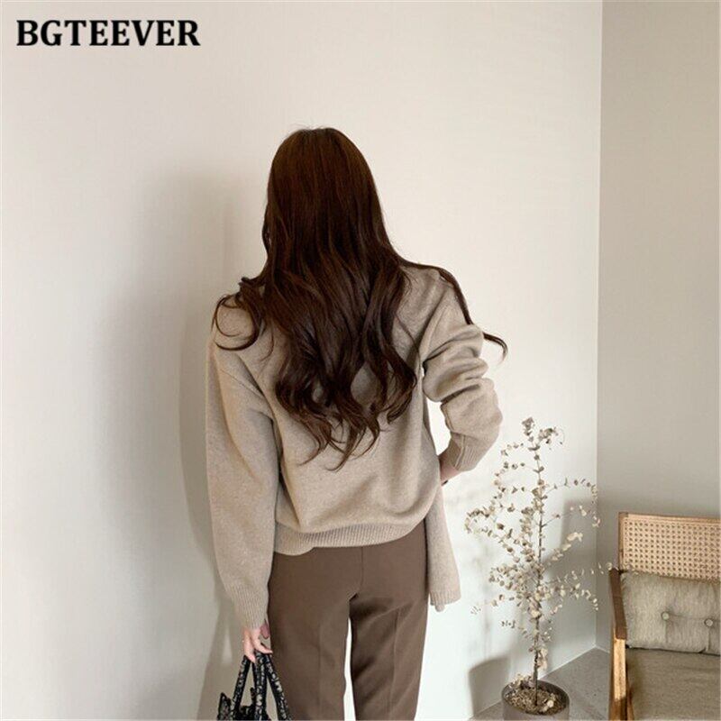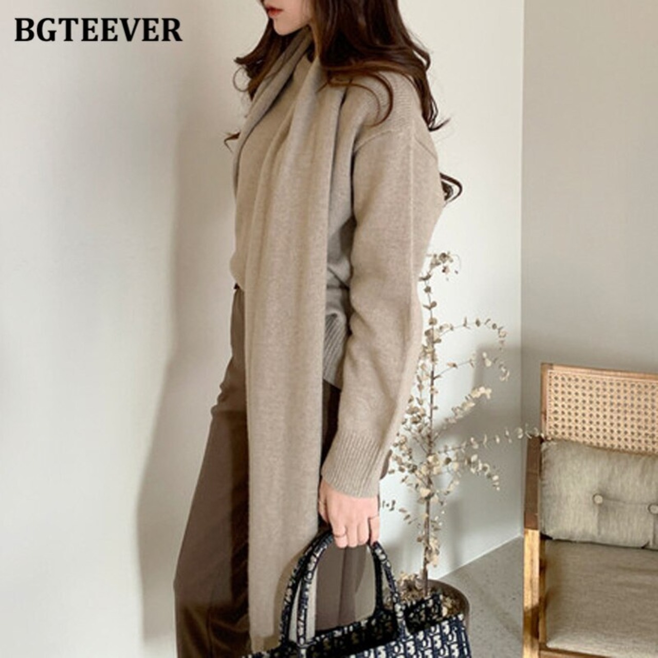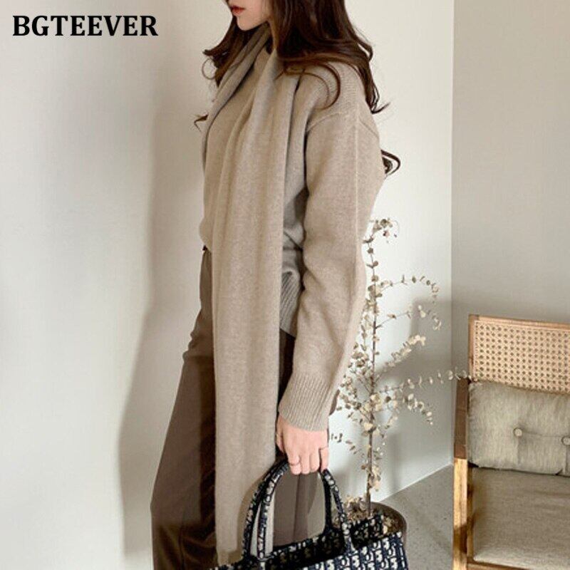 【新作】【送料無料】 BGTEEVERソフトウォームロングスカーフ&ソリッドフルスリーブルーズニットプルオーバーシックなボタンレディースセーター ソリッドカラー 12b153658576287