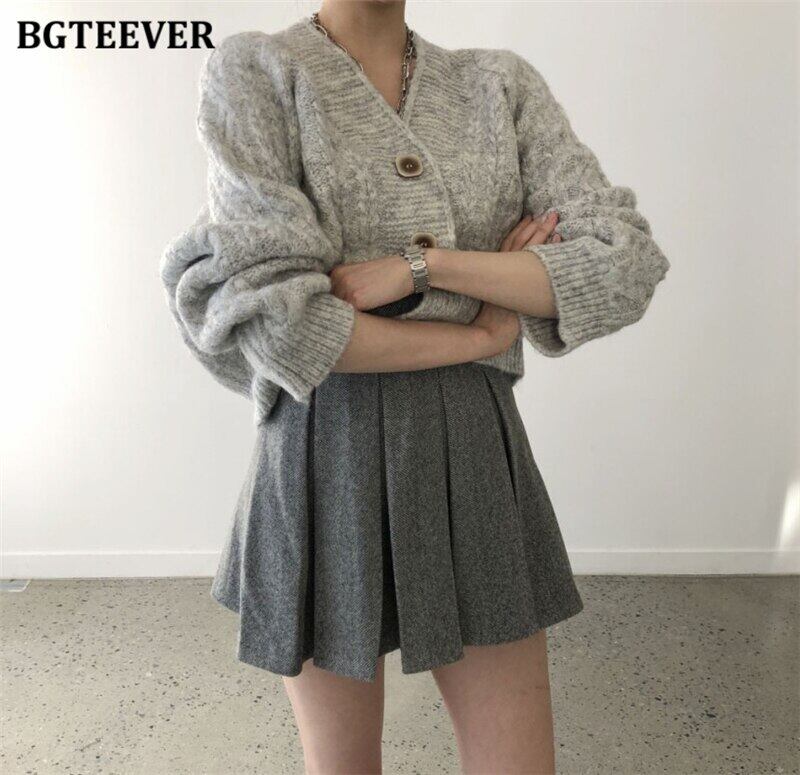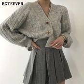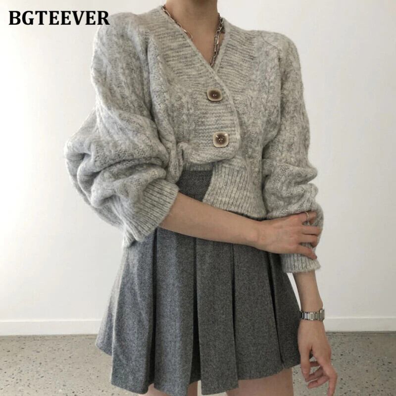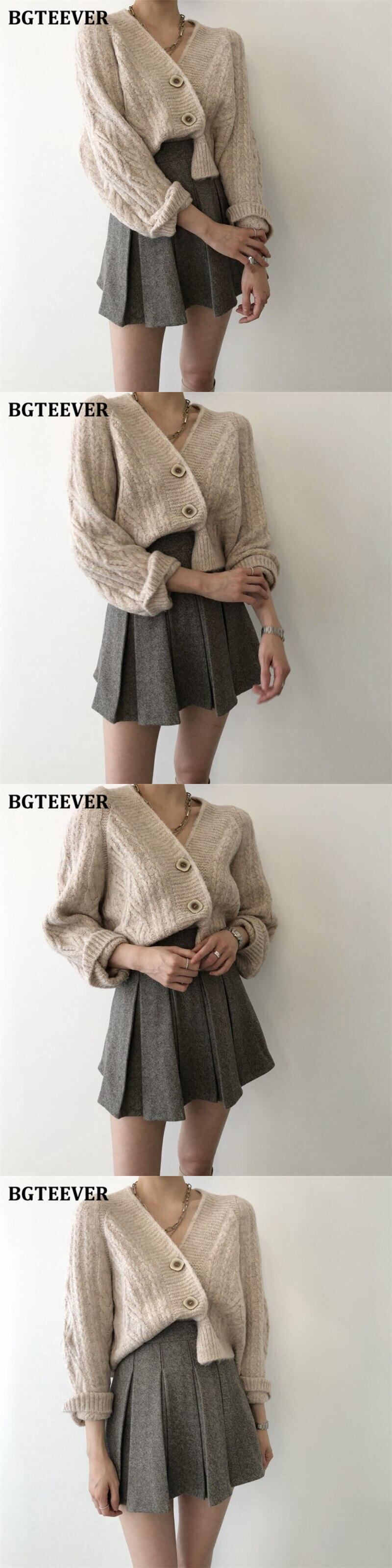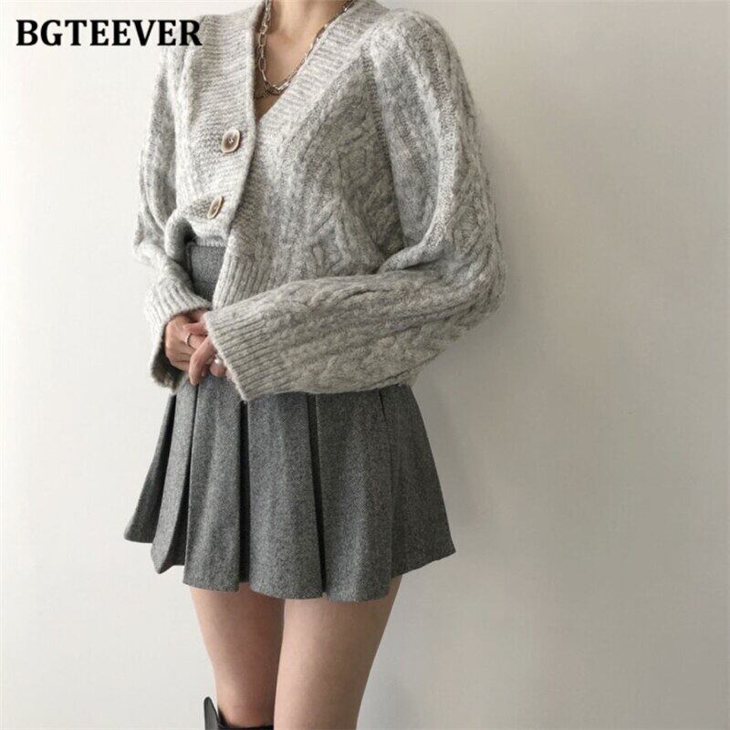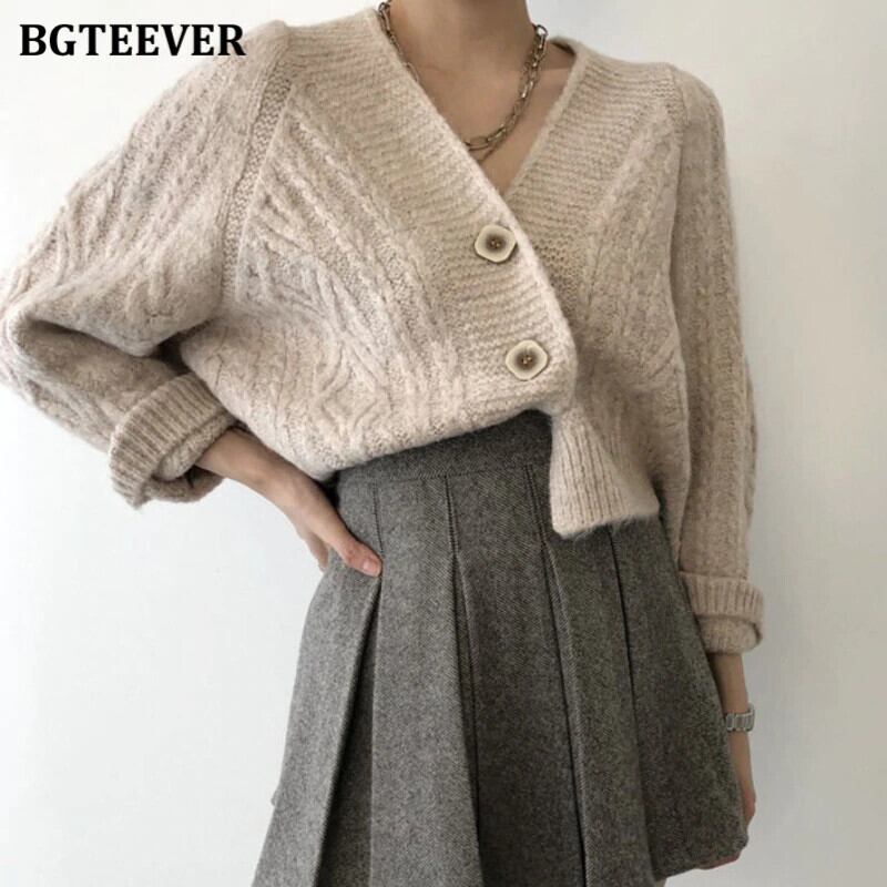 【新作】【送料無料】 BGTEEVERシックなヴィンテージVネック女性ツイストカーディガントップス2020秋冬シングルブレストルーズオープンステッチセーター オータム 秋物 ウィンター 冬物 ビンテージ 12b123415382596