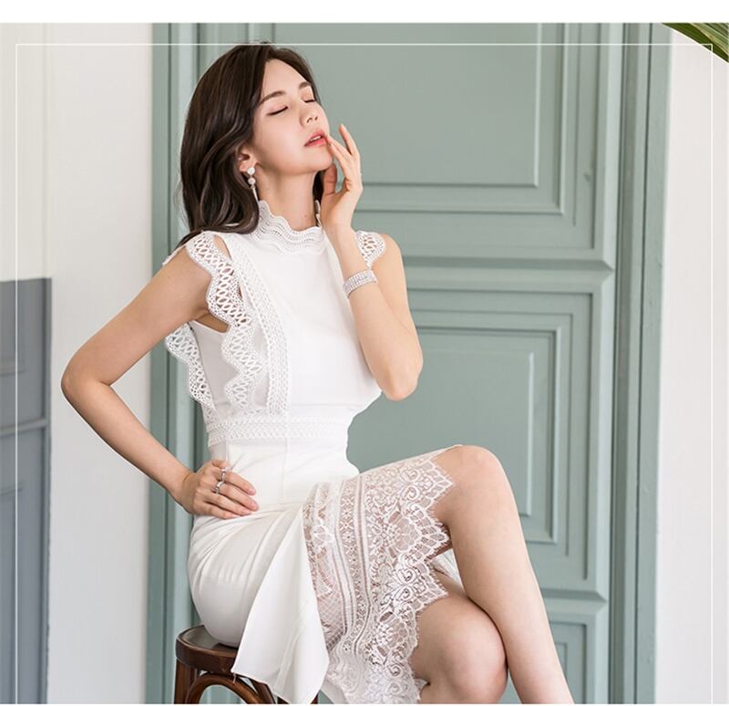 【新作】【送料無料】 女性2ピースセットスリムウエストレースパッチワークトップス&ウエストスプリットボディコンスカートセットOLスタイル女性2ピース 12b115145274311