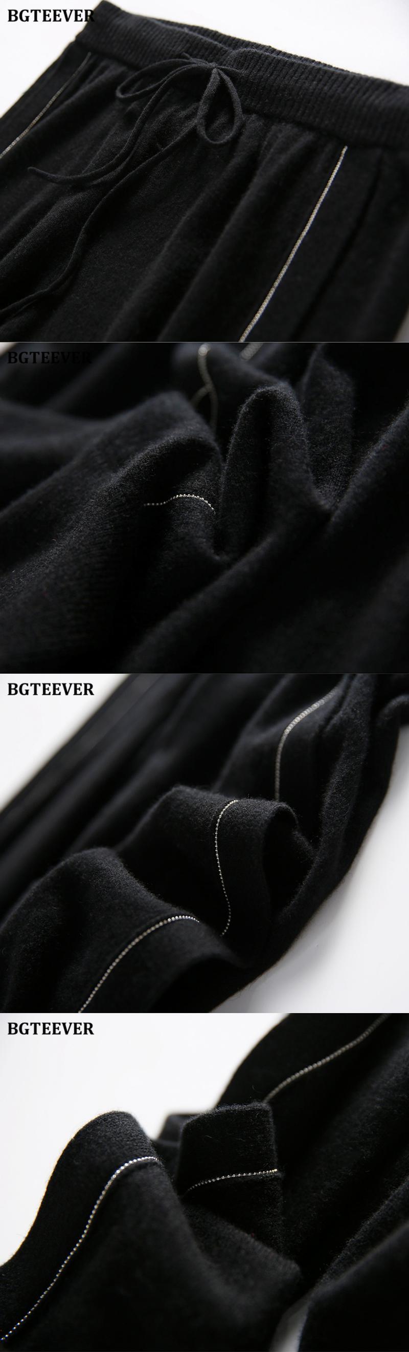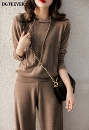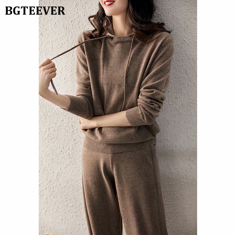 【新作】【送料無料】 BGTEEVER秋冬ニット2点セット女性用フード付きプルオーバー&ワイドレッグレースアップニットパンツ2020セーターセット オータム 秋物 ウィンター 冬物 ワイドパンツ 12b130255352298