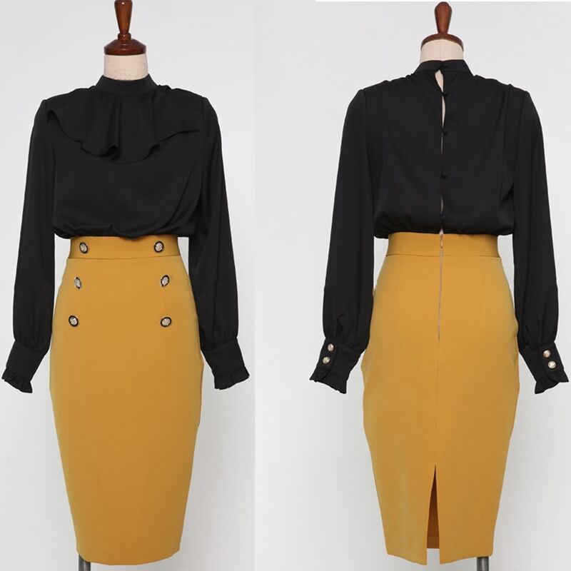 【新作】【送料無料】 オフィスOネックパッチワークレディースドレスフリルヒップパッケージドレス2019春の作業服女性Vestidos ラッフル スプリング 春物 会社 学校 通勤や通学にも 12b185039835153