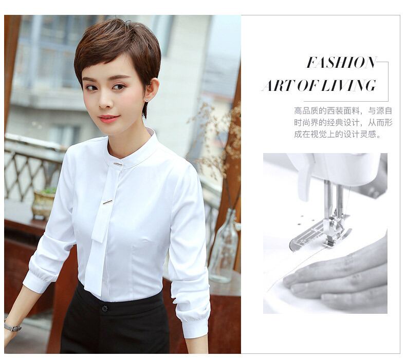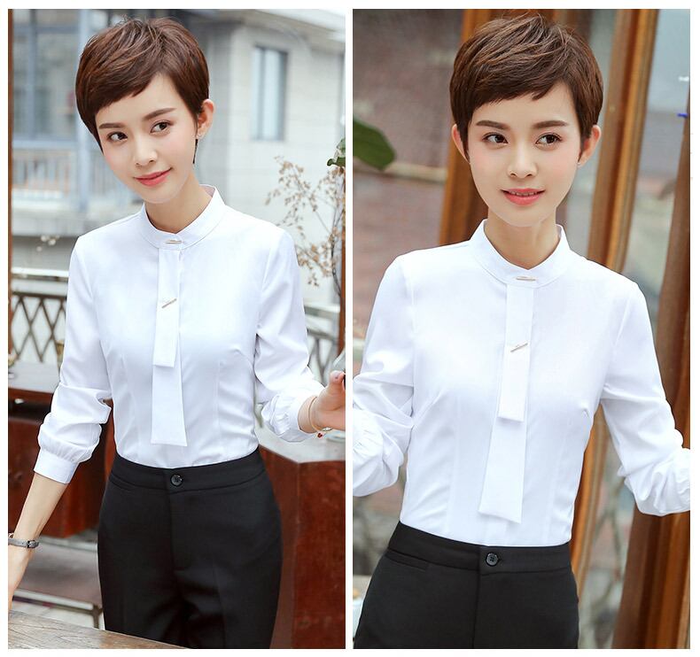 【新作】【送料無料】 プロの白いシャツ女性長袖小さなスタンドカラーOL気質女性マルウェアアンチグレアスリム白いシャツオーバーオール-アリババ ロング ホワイト 12b312449080945