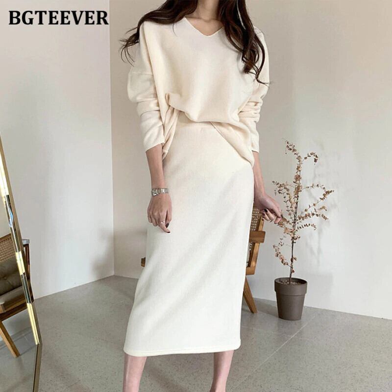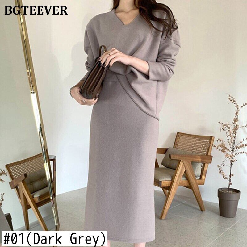【新作】【送料無料】 BGTEEVER 20202ピースセーターセットフルスリーブVネックプルオーバー&パッケージヒップスカートレディースニットセット冬 ウィンター 冬物 12b159339880008