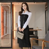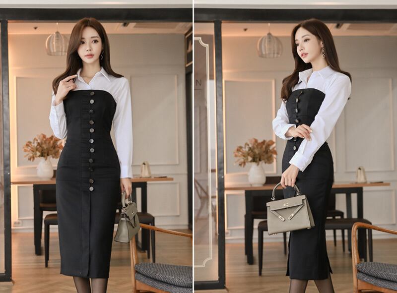 【新作】【送料無料】 2ピースセットターンダウンカラーフルスリーブホワイトブラウス&シングルブレストストラップレスOLスタイル女性セット2019 12b172127672810