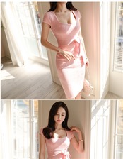 【新作】【送料無料】 スクエアネックサマードレスレディース半袖シースボディコンペンシルドレス2019OLスタイルボウミドル丈Vestido ショート リボン ハーフスリーブ 夏物 スクウェア 12b153534692476