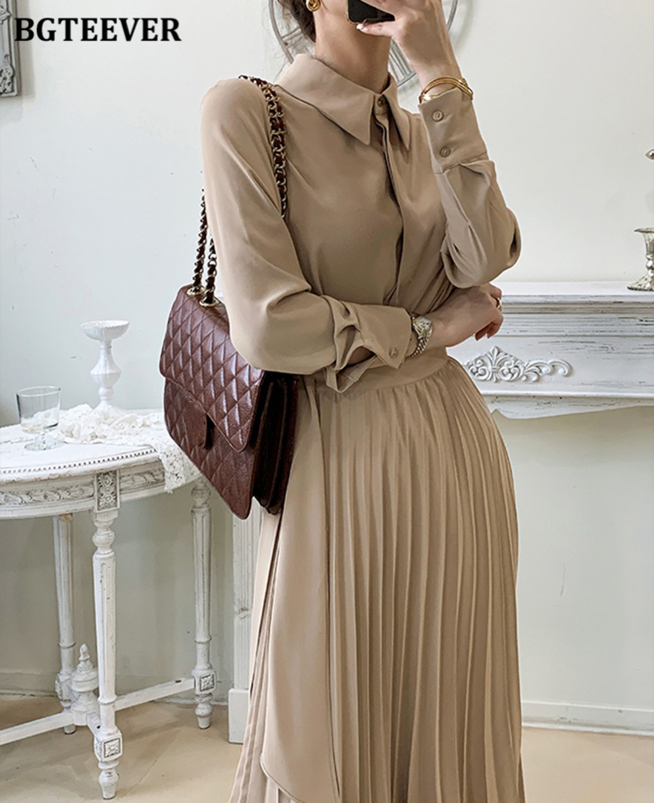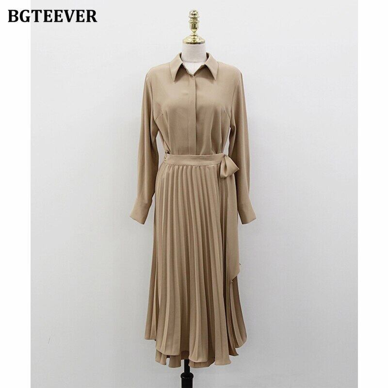 【新作】【送料無料】 BGTEEVERラペルレディースシャツドレスシングルブレストレースアッププリーツドレスSpringVestidos 2021 スプリング 春物 12b14081396429