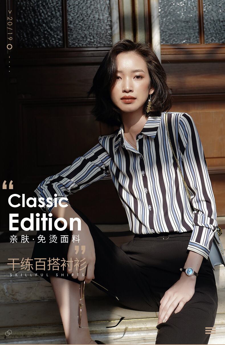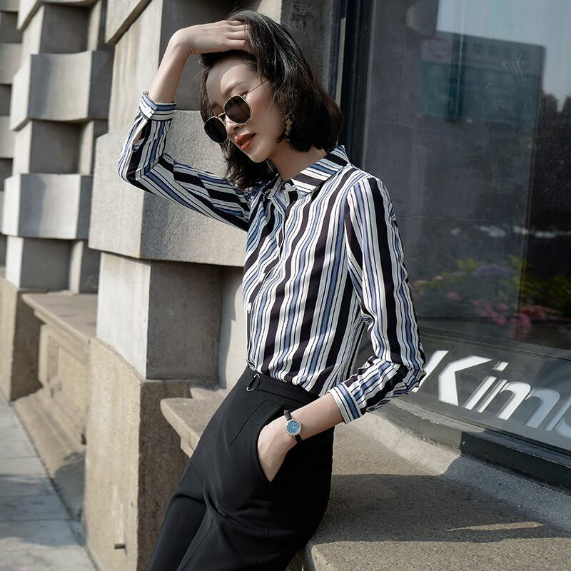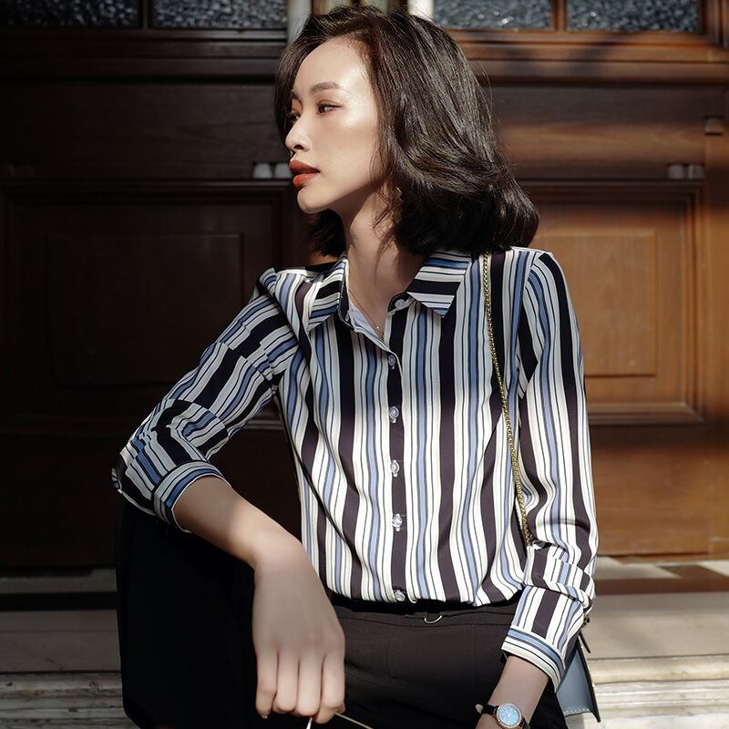 【新作】【送料無料】 Real s2020春秋新作パープルブルーストライプシャツレディースプラスサイズルーズ長袖シャツオールマッチカジュアル気質-アリババ ロング 大きめサイズ スプリング 春物 オータム 秋物 12b252125328049