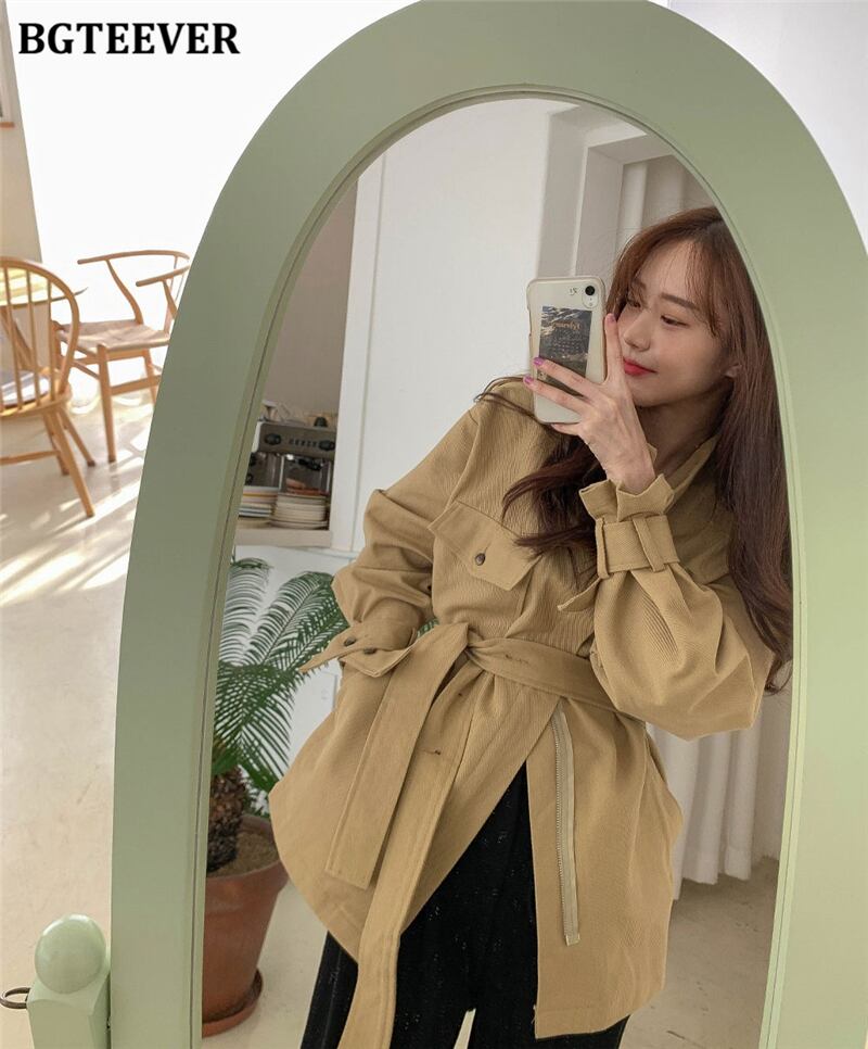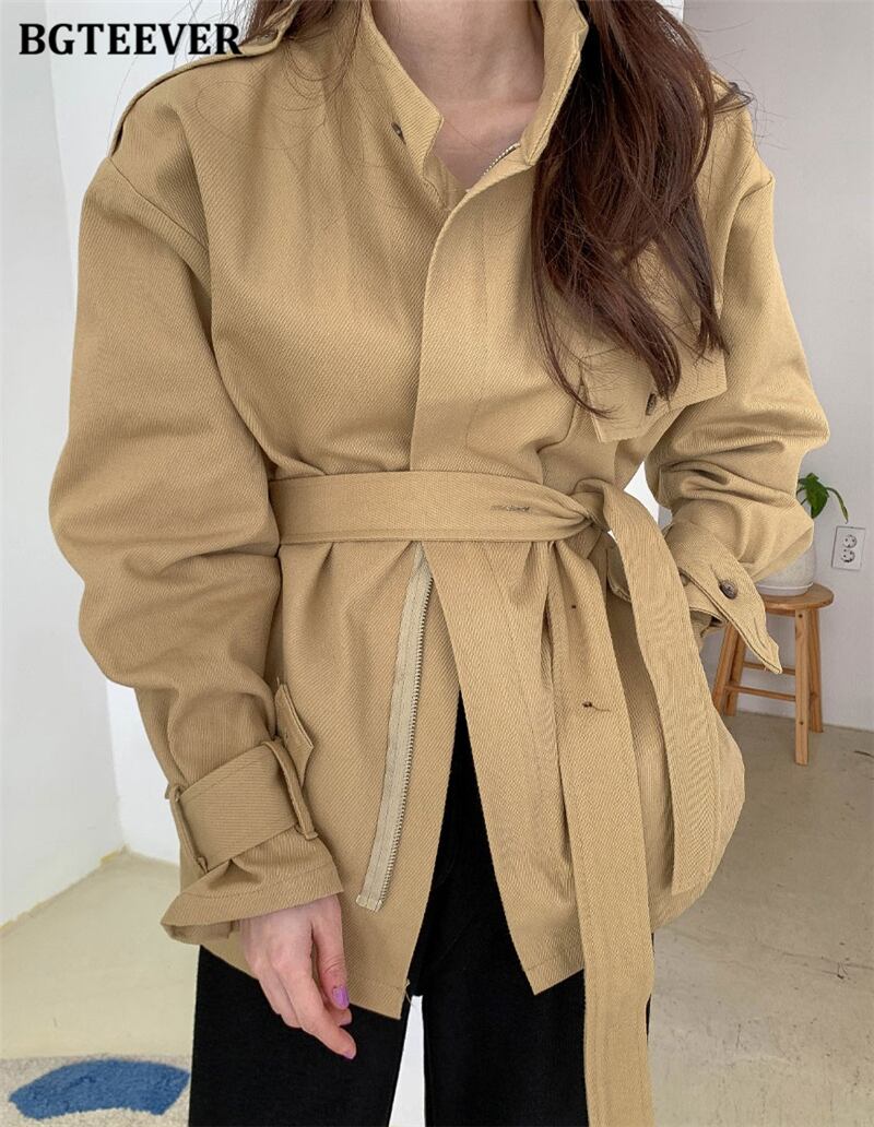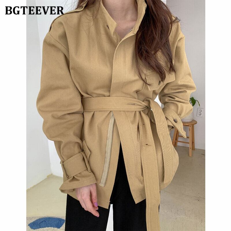 【新作】【送料無料】 BGTEEVERヴィンテージスタンドカラージッパーアップレディースジャケットルーズポケット長袖包帯ジャケットアウター2021 ロング ビンテージ 12b192105400405