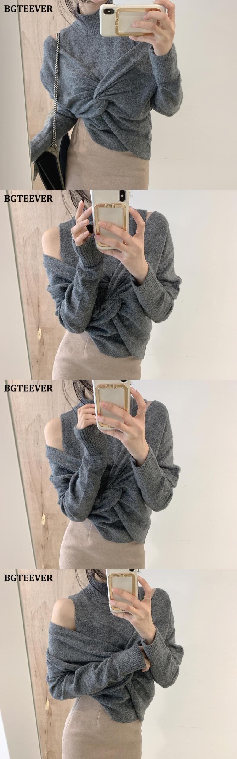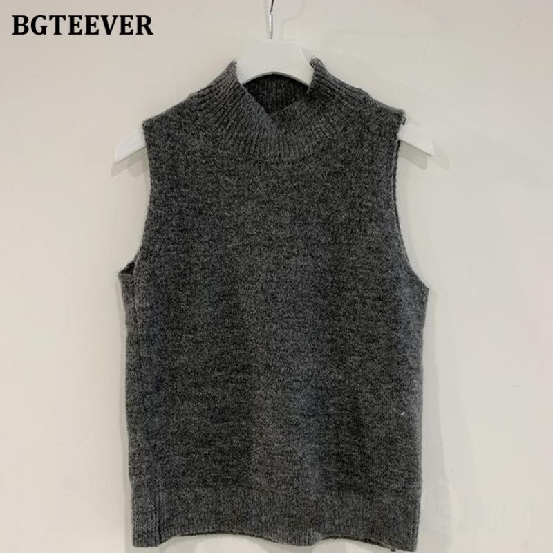 【新作】【送料無料】 BGTEEVERスタイリッシュな2ピースニットプルオーバーセット女性ハーフタートルネックノースリーブニットベスト&Vネックフルスリーブジャンパー 12b164661456775
