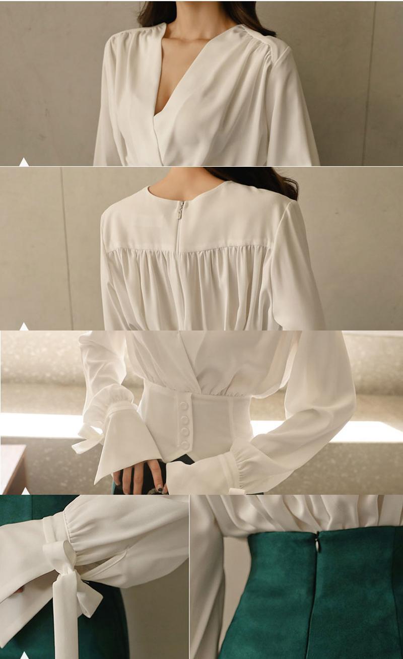 【新作】【送料無料】 OLスタイル2ピースセットVネックホワイトブラウス&ウエストスエードヒップパッケージスカート2018オータムオフィスレディースセット スウェード 秋物 会社 学校 通勤や通学にも 12b122747288826
