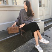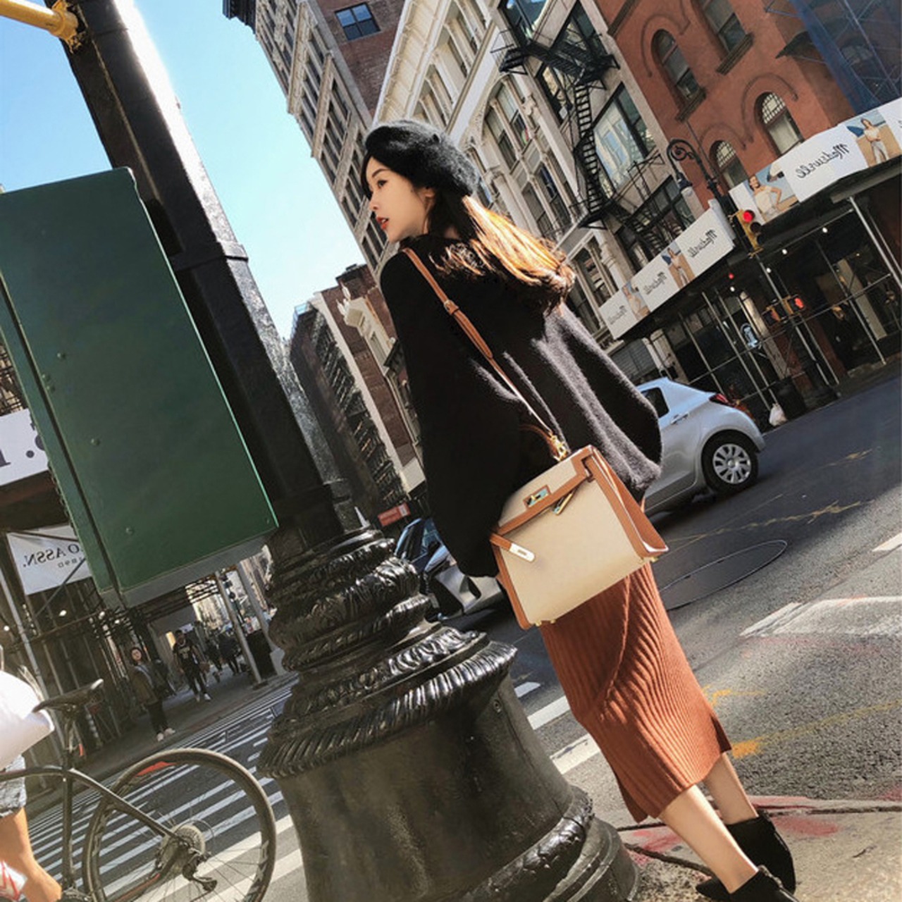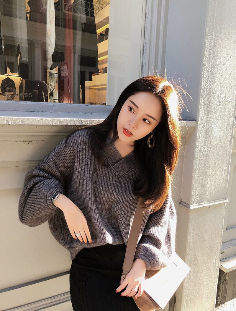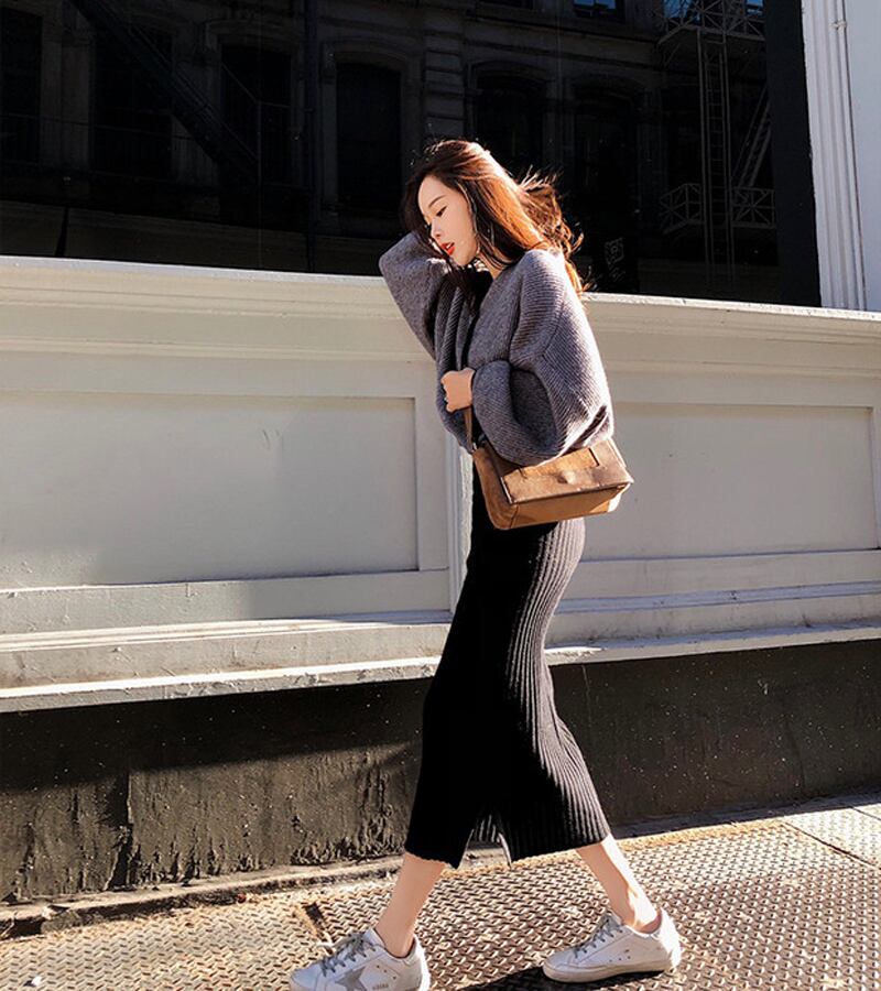 【新作】【送料無料】 2020年2点セットランタンスリーブVネックプルオーバー&ウエストサイドスプリットスカートレディースセータースーツニットセット 12b196240106022