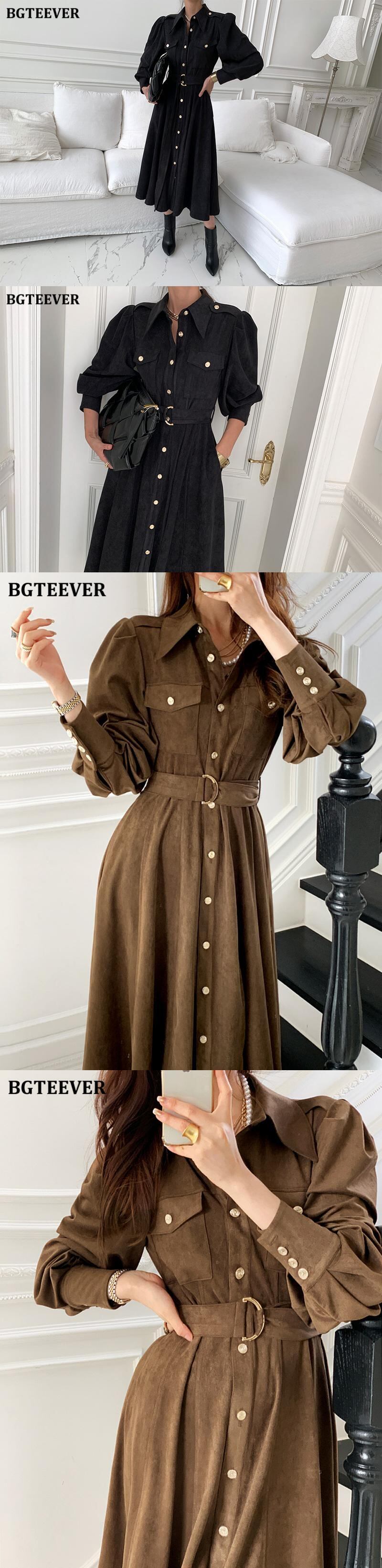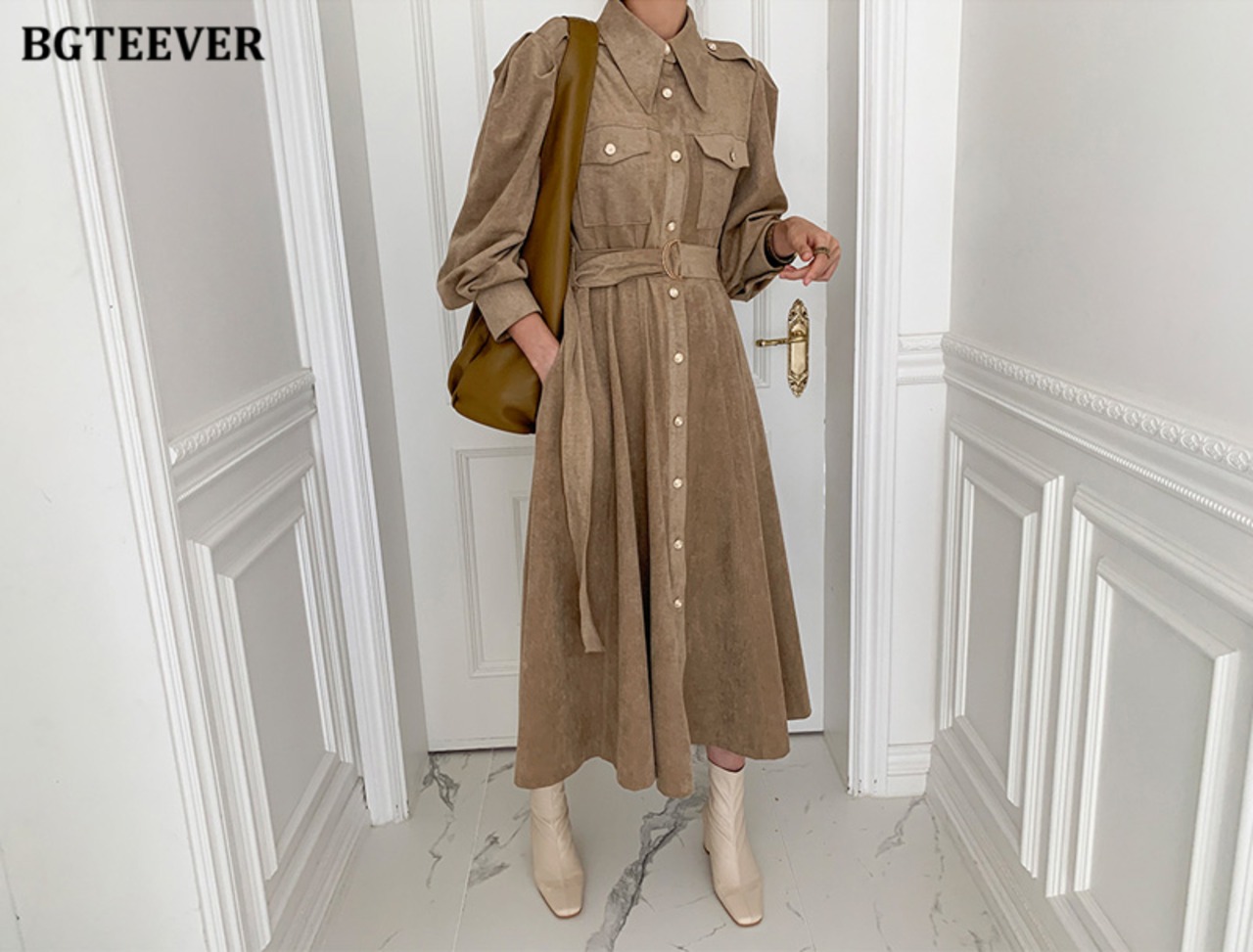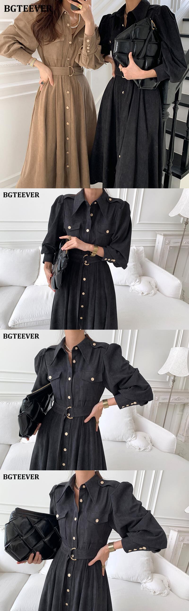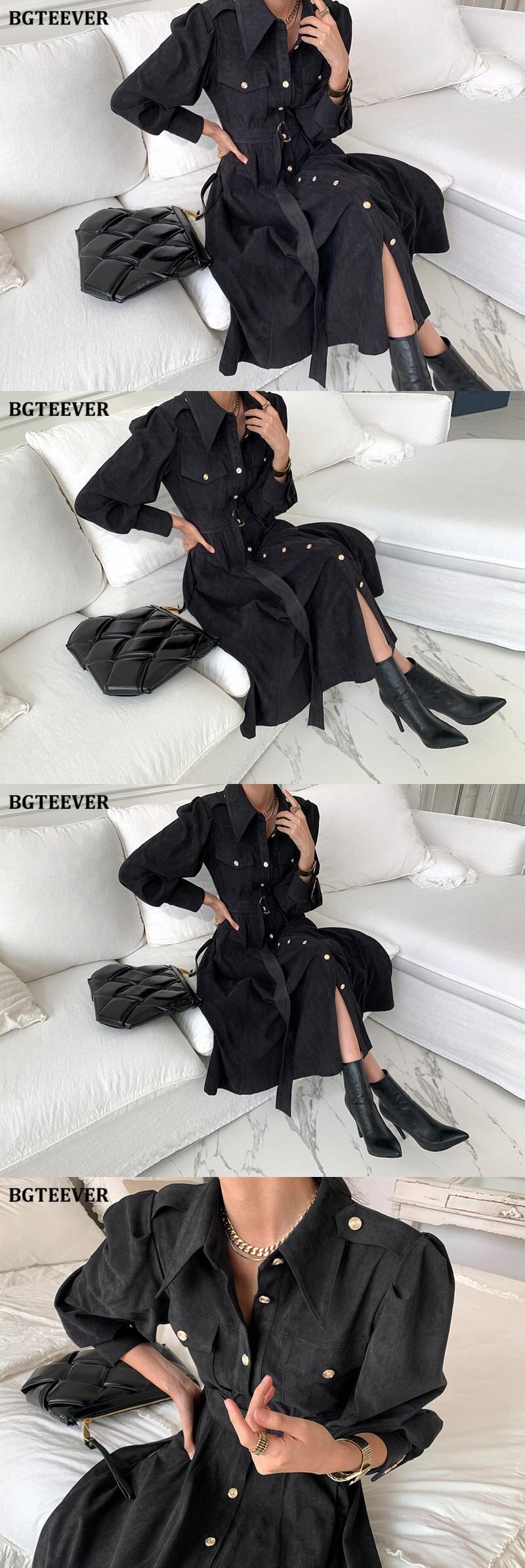 【新作】【送料無料】 BGTEEVEROネックAラインドレスターンダウンカラーレディーススリムウエストベルトミディドレスシングルブレストVestidos ハーネス 12b119691046609