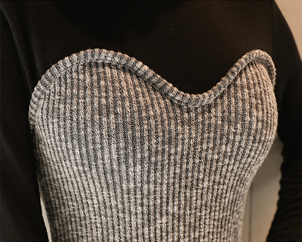 【新作】【送料無料】 秋冬タートルネックパッチワーク女性ロングドレスフルスリーブサイドスプリットVestidosファム2018女性スキニードレス オータム 秋物 ウィンター 冬物 フェミニン 12b165186190045