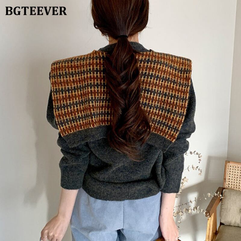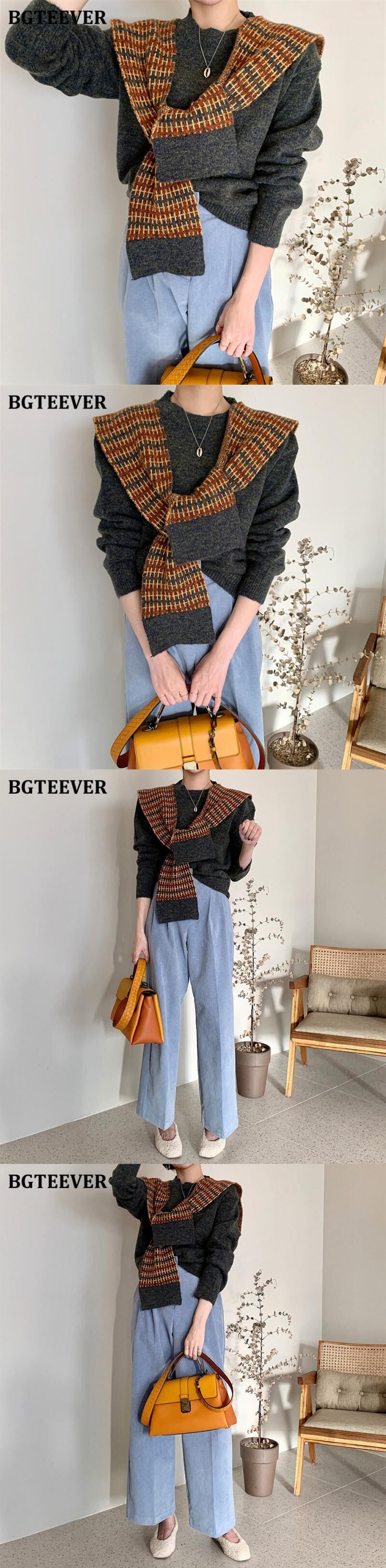 【新作】【送料無料】 BGTEEVERヴィンテージフェイク2ピースレディースセーターパッチワークラップOネック長袖ルーズシックプルオーバーセーター2020 ロング ビンテージ 12b148511677839