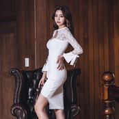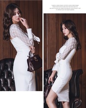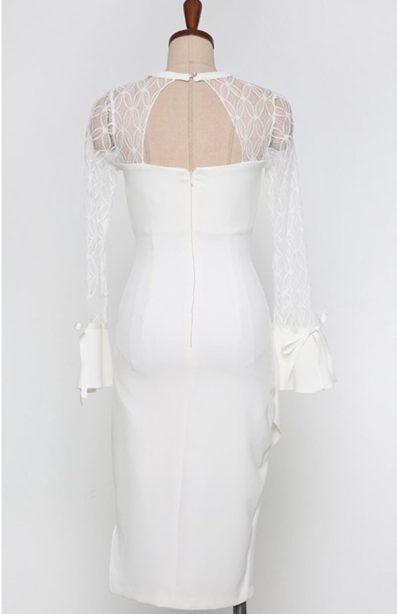 【新作】【送料無料】 セクシーなレースパッチワーク中空アウトボディコンドレス女性2019春不規則フレアスリーブドレスミディヒップパッケージVestidos スプリング 春物 12b179651877575