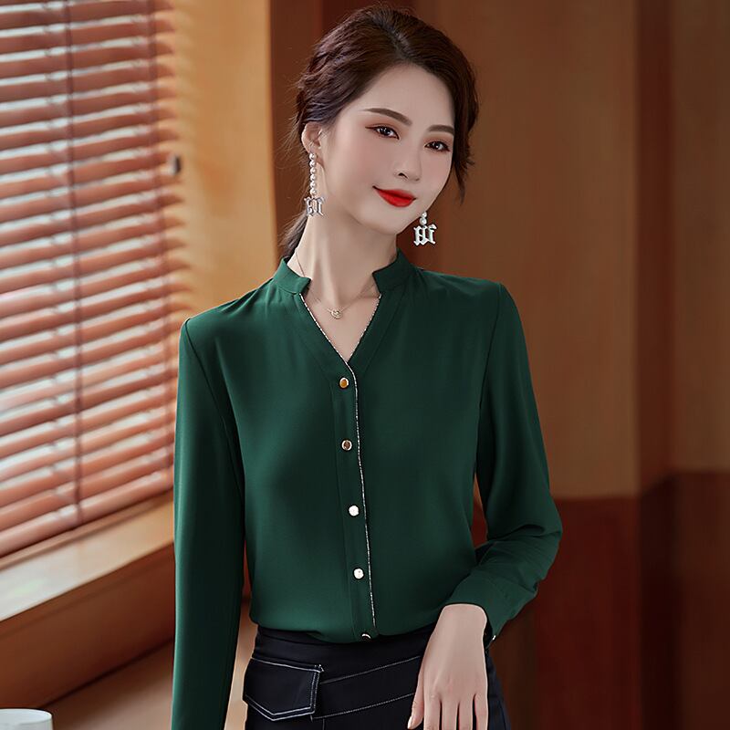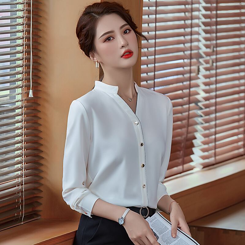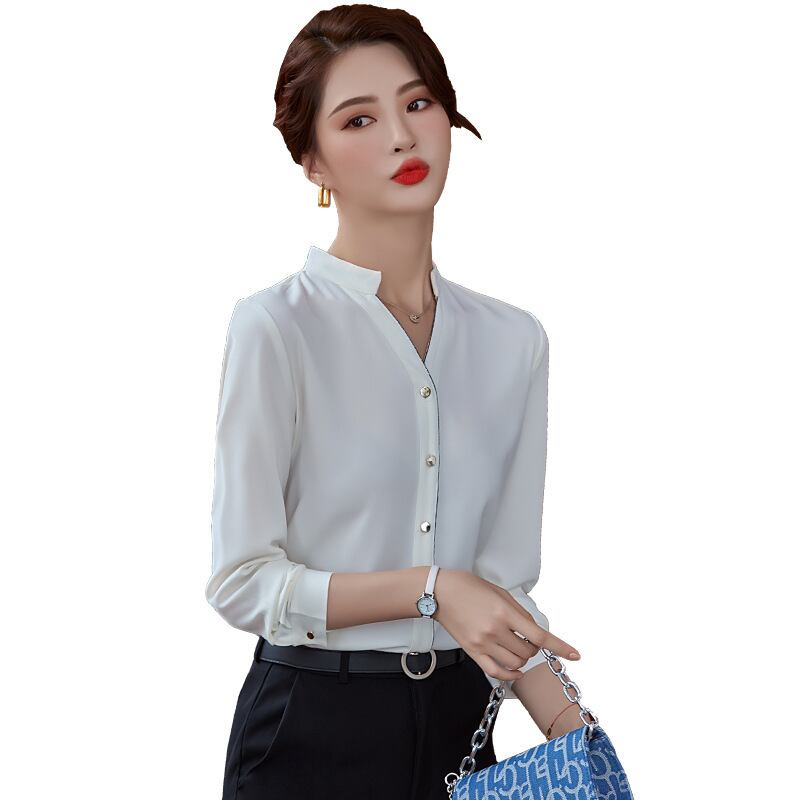 【新作】【送料無料】 本物の2020年春秋新作大型Vネックシャツ長袖薄カジュアルカジュアルオールマッチ鎖骨シャツレディース-アリババ ロング 大きめサイズ スプリング 春物 オータム 秋物 12b27986799830