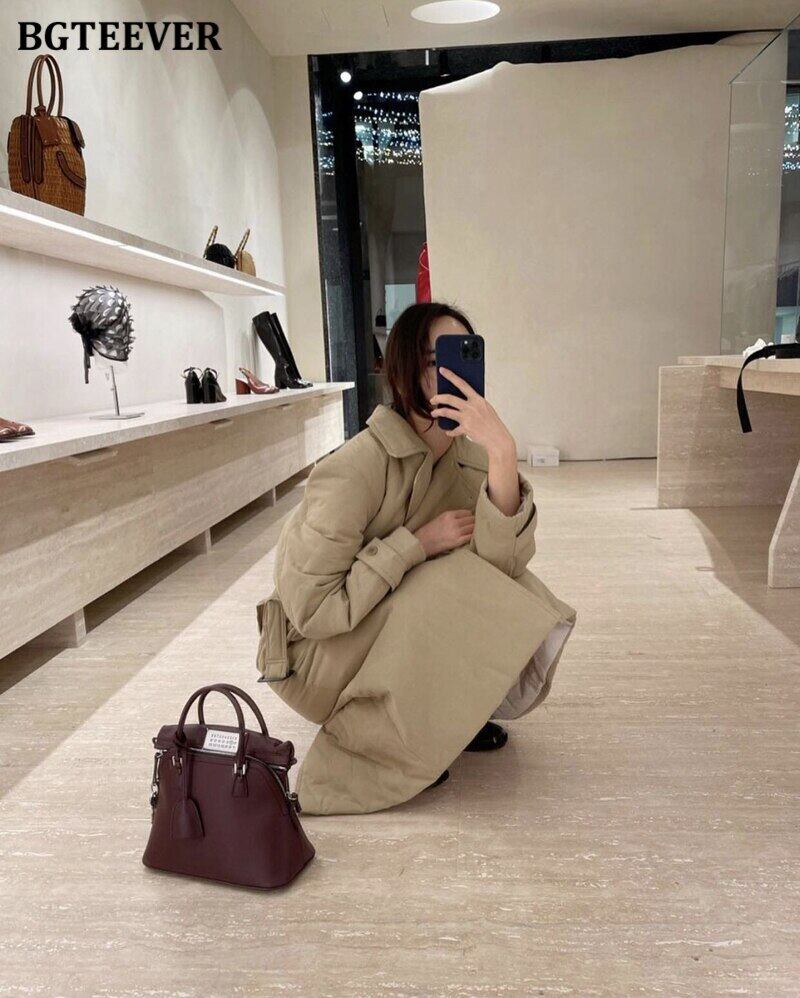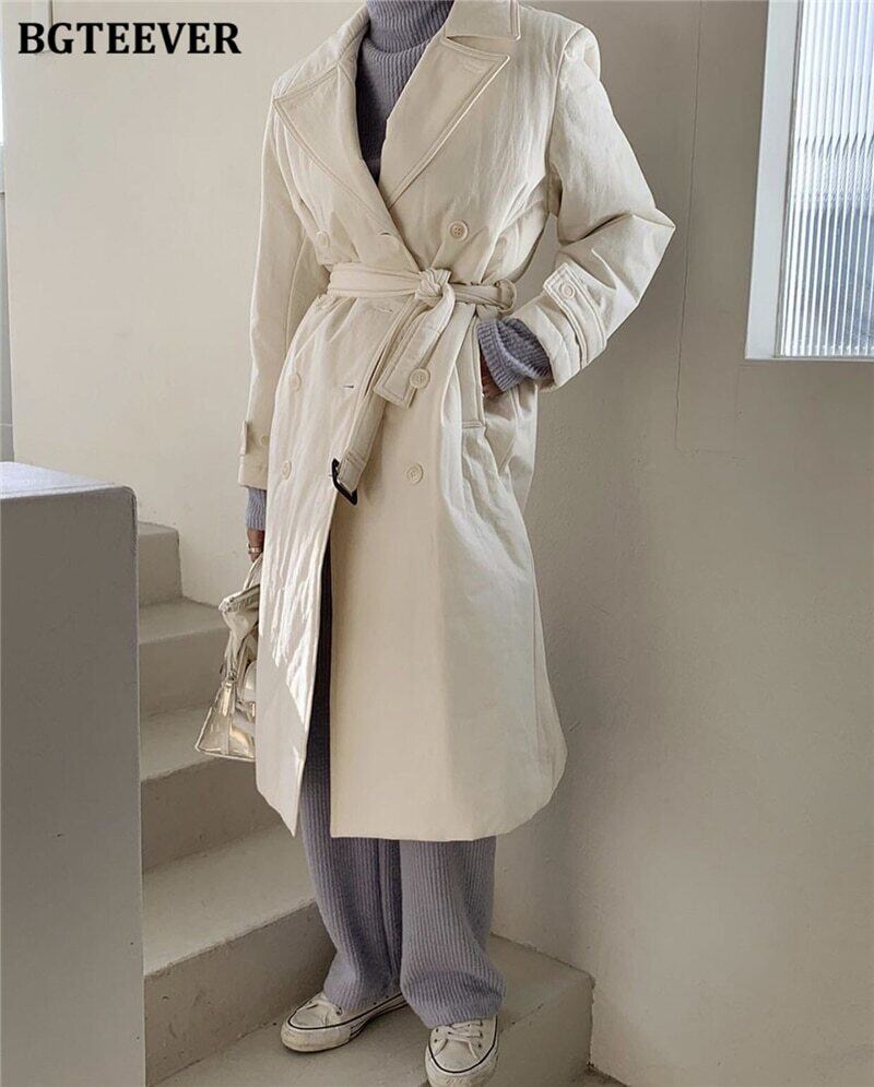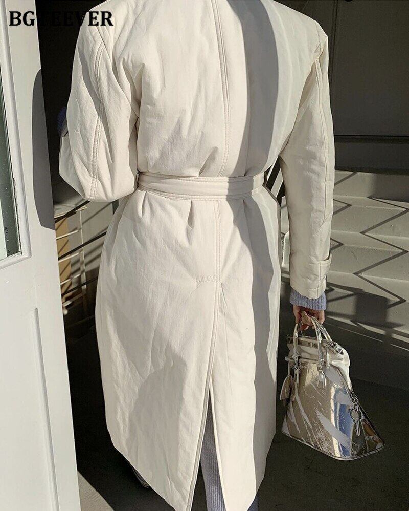 【新作】【送料無料】 BGTEEVERダブルブレストベルトロングパーカーレディースコットンパッド入り厚手のウィンタージャケットソリッドオーバーサイズウォームオーバーコート 冬物 ハーネス ソリッドカラー 12b160788716262