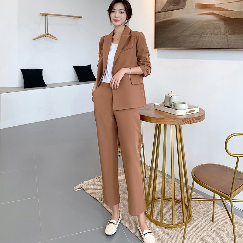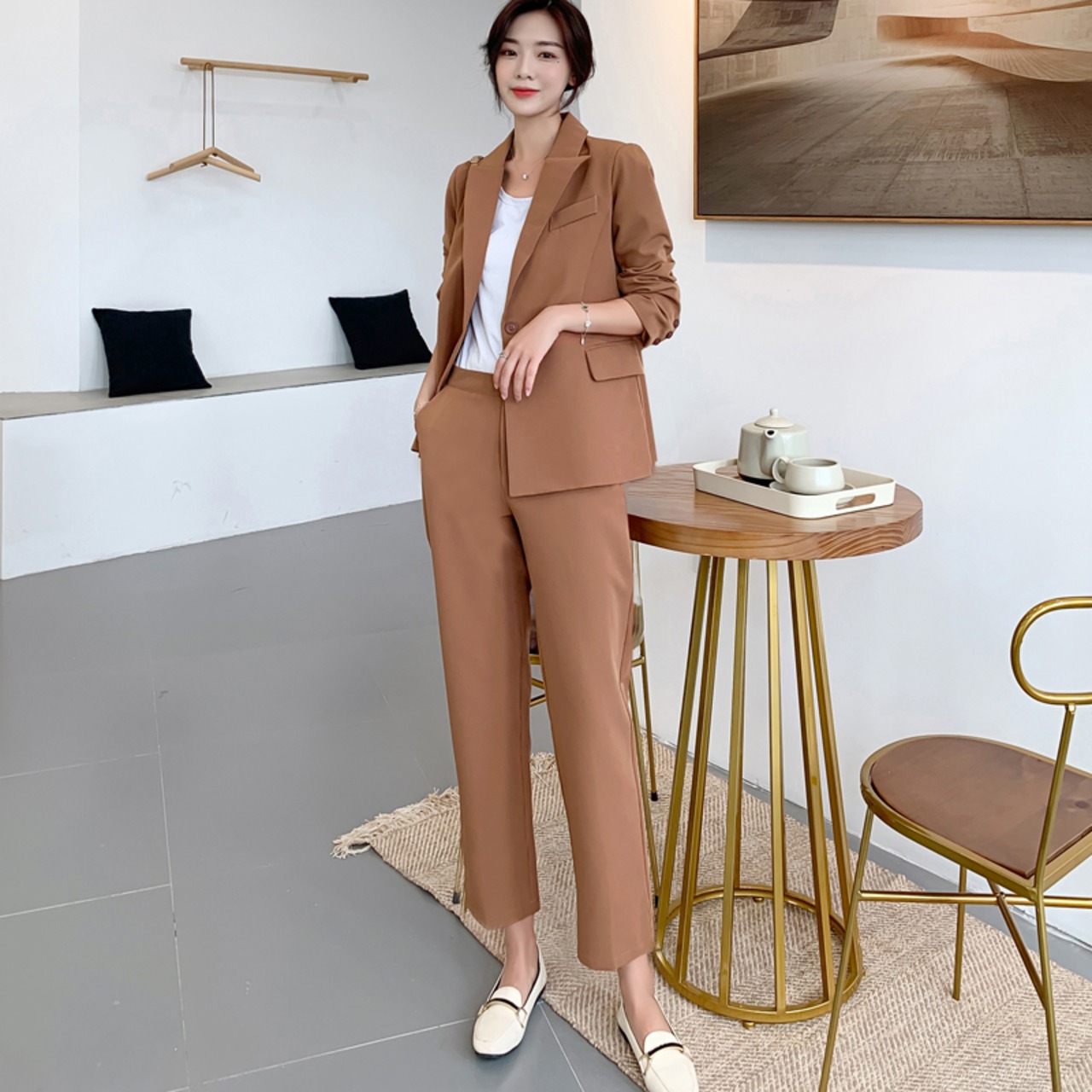 【新作】【送料無料】 BGTEEVEERレディースパンツスーツワンボタンブレザージャケット&足首丈パンツワークウェアスーツ2点セット2019秋 オータム 秋物 12b182430381171