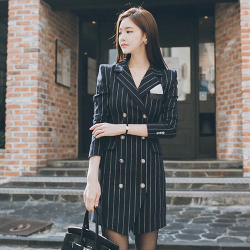 【新作】【送料無料】 2018 Office Lady Slim Striped Blazer Split Sexy Notched Women Dress Work Suits Feminino ストライプ スリム 会社 学校 通勤や通学にも 12b129204243083