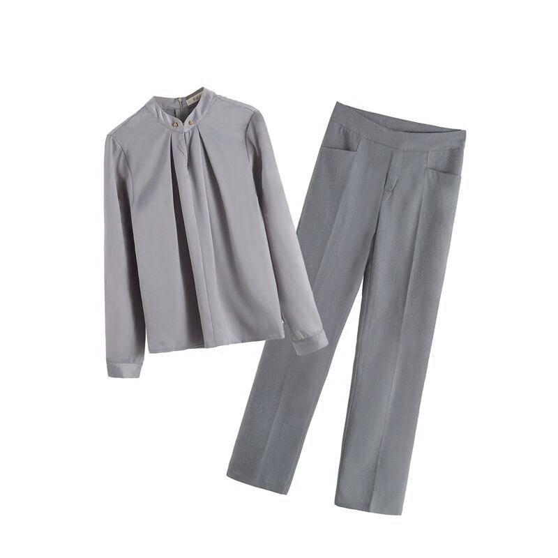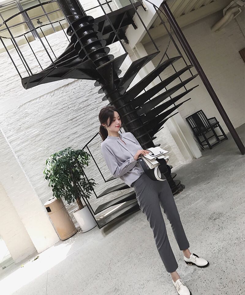 【新作】【送料無料】 2ピースセットフルスリーブOネックブラウスシャツ&ペンシルパンツ秋のオフィススーツ女性セット2018 オータム 秋物 会社 学校 通勤や通学にも 12b169311606267